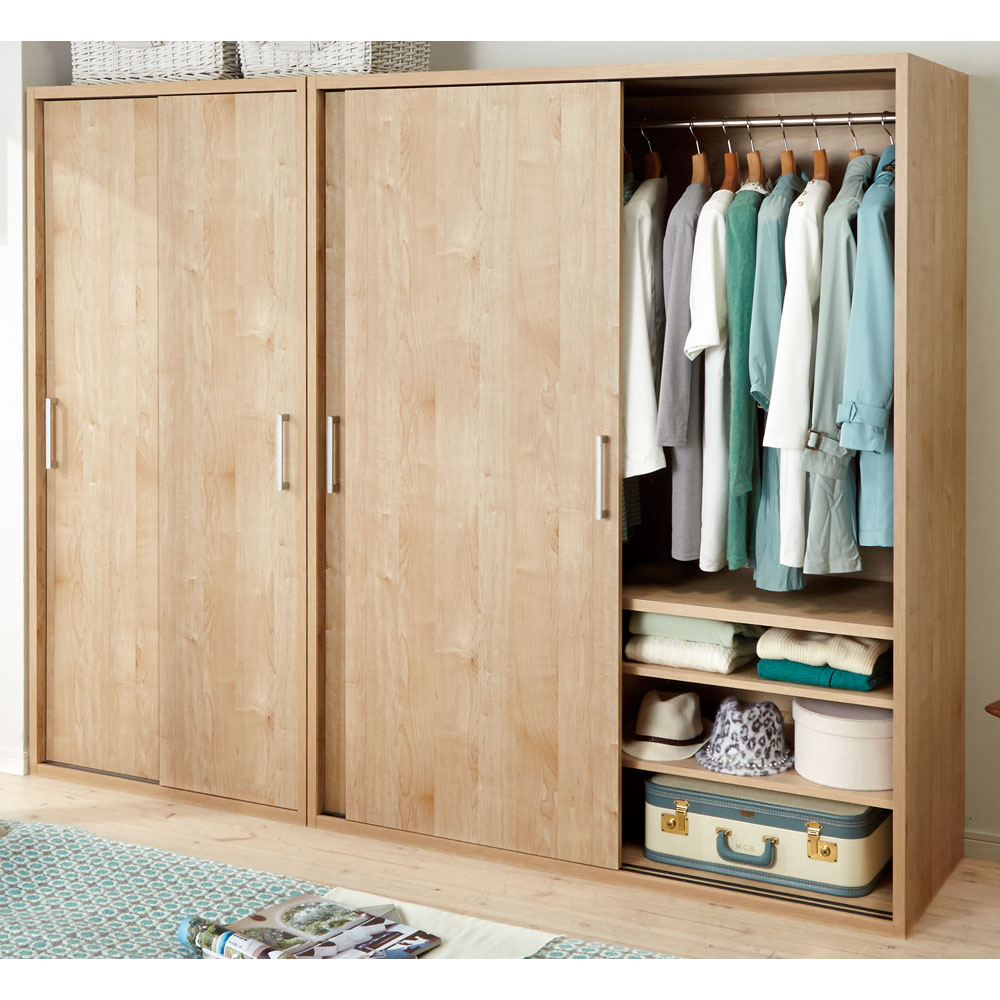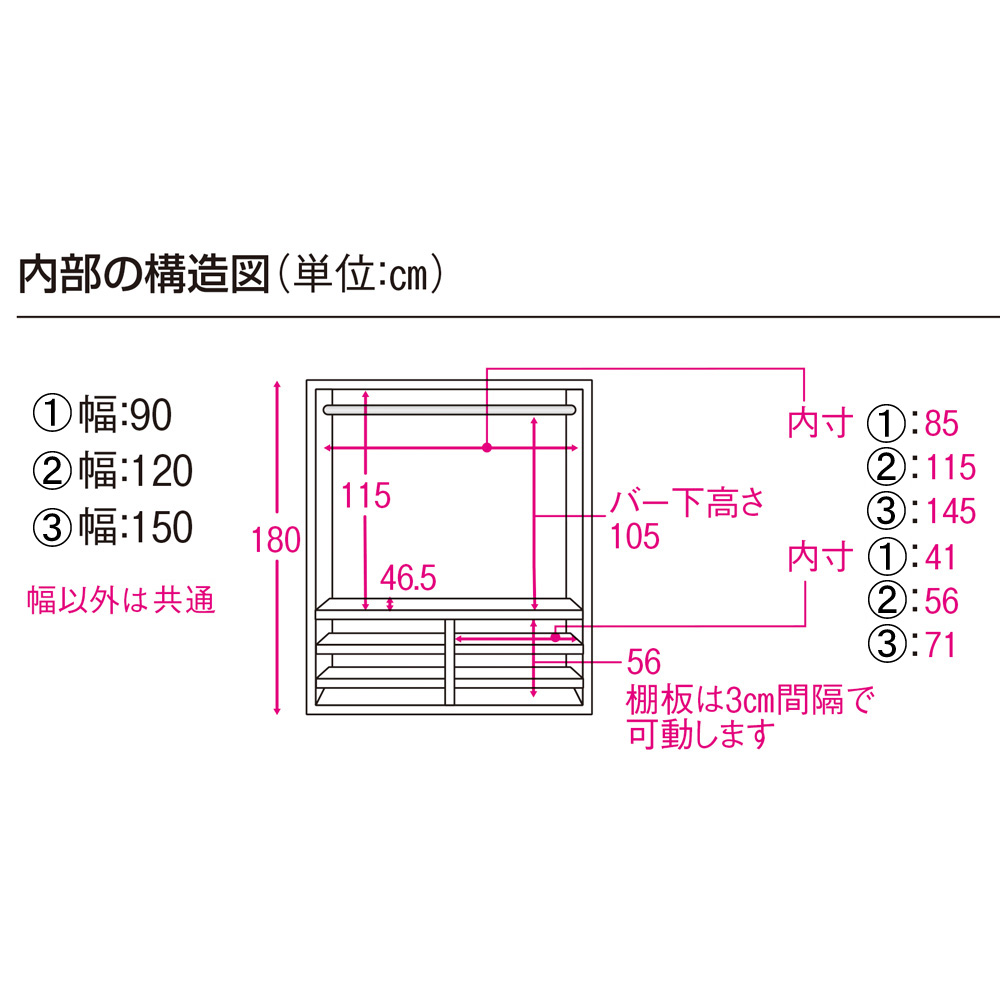 (ア)ナチュラル やさしい雰囲気のワードローブ。引き戸で扉が前に出ないので省スペースにお使いいただけます。