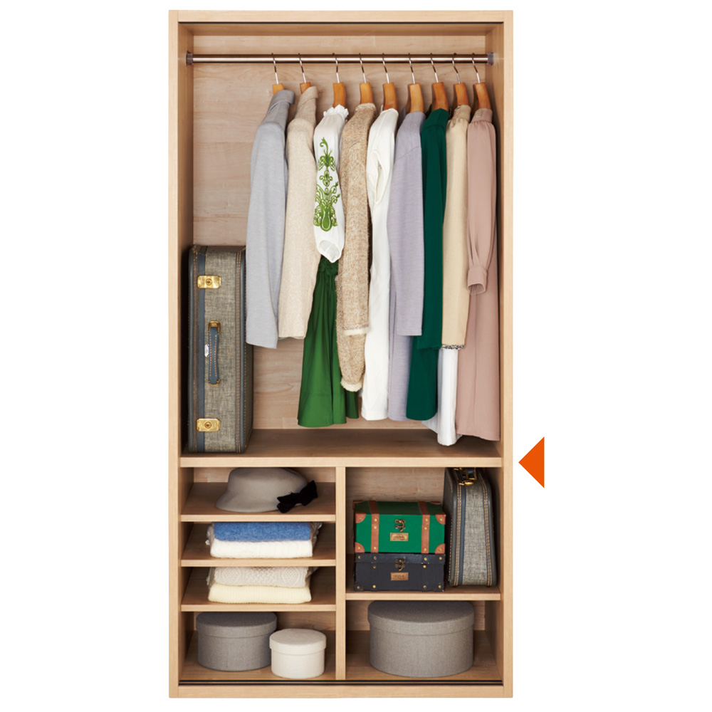引き戸を外した状態。たっぷりの衣類収納です。(▲は固定棚です)