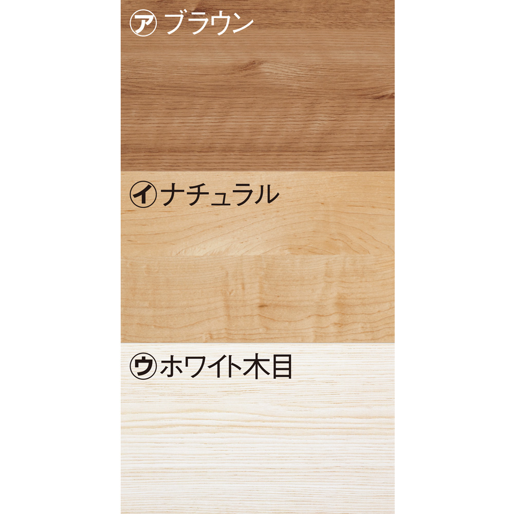 あたたかみと味わい深さを感じる(ア)ブラウン。明るく開放感ある空間を演出する(イ)ナチュラル。上品な佇まいでお部屋に馴染む(ウ)ホワイト木目。