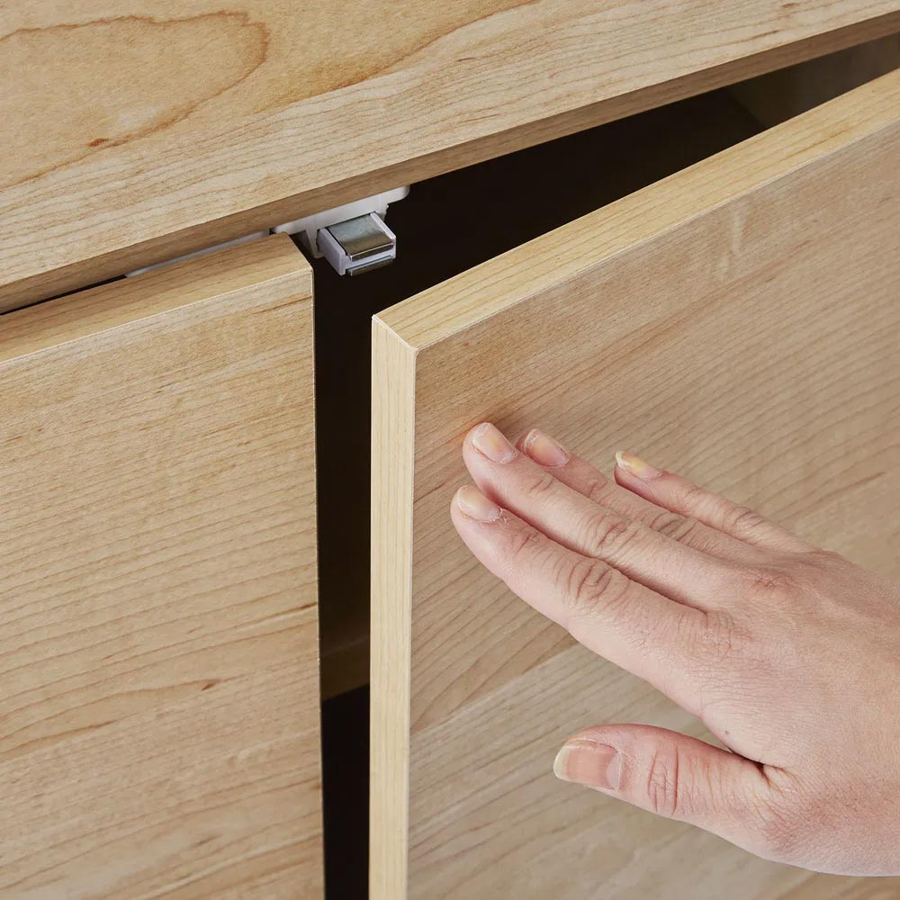 扉部はプッシュオープン式。突起が無くスッキリした印象に仕上げました。