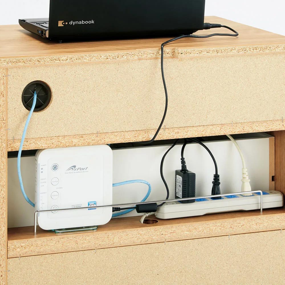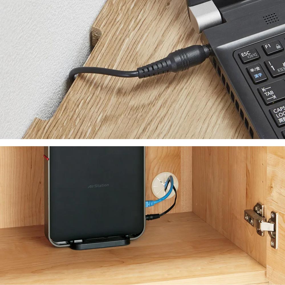 ルーターや電源タップは背面に収納。上下段の家電と内部配線できます。