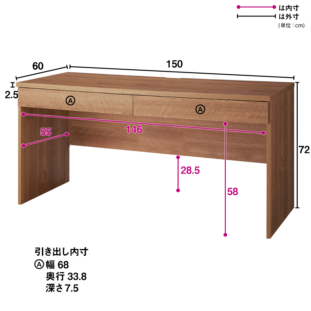 空間をみださない北欧ナチュラルスタイルのPCデスク。天板奥行60cmで作業スペースが広がり業務効率もアップ。機能とデザインが両立した天然木調の北欧スタイル。リビングダイニングにも調和します。[色の種類]◆天然木調の素材感が特徴のブラウン色とナチュラル色の2種類をご用意。[サイズ・バリエーション]◆デスク幅は90cm、120cm、150cm。◆デスク奥行は60cm。天板が広く作業スペースが広がり業務効率もアップ。奥行60cmなのでワークデスクやパソコン周辺機器も設置できる収納力も魅力。◆シリーズのサイドラックやプリンターワゴンと机を組み合わせて使えば機能的なシステムデスク空間を作り出します。◆プリンターワゴンは、デスク下にも収まり文房具やコピー用紙、小物収納にも便利です。[機能・構造・仕様]◆デスクの天板はキス・汚れがつきにくく高級感のある強化化粧合板。◆デスク背面には電源タップが収まるスペースがあるので配線を綺麗にまとめることができます。【活躍空間】◆書斎で、ワークデスクやパソコンテーブルとして。◆リビングダイニングルームでリビング学習机として。◆子供部屋で、学習デスク(学童机)としておすすめです。