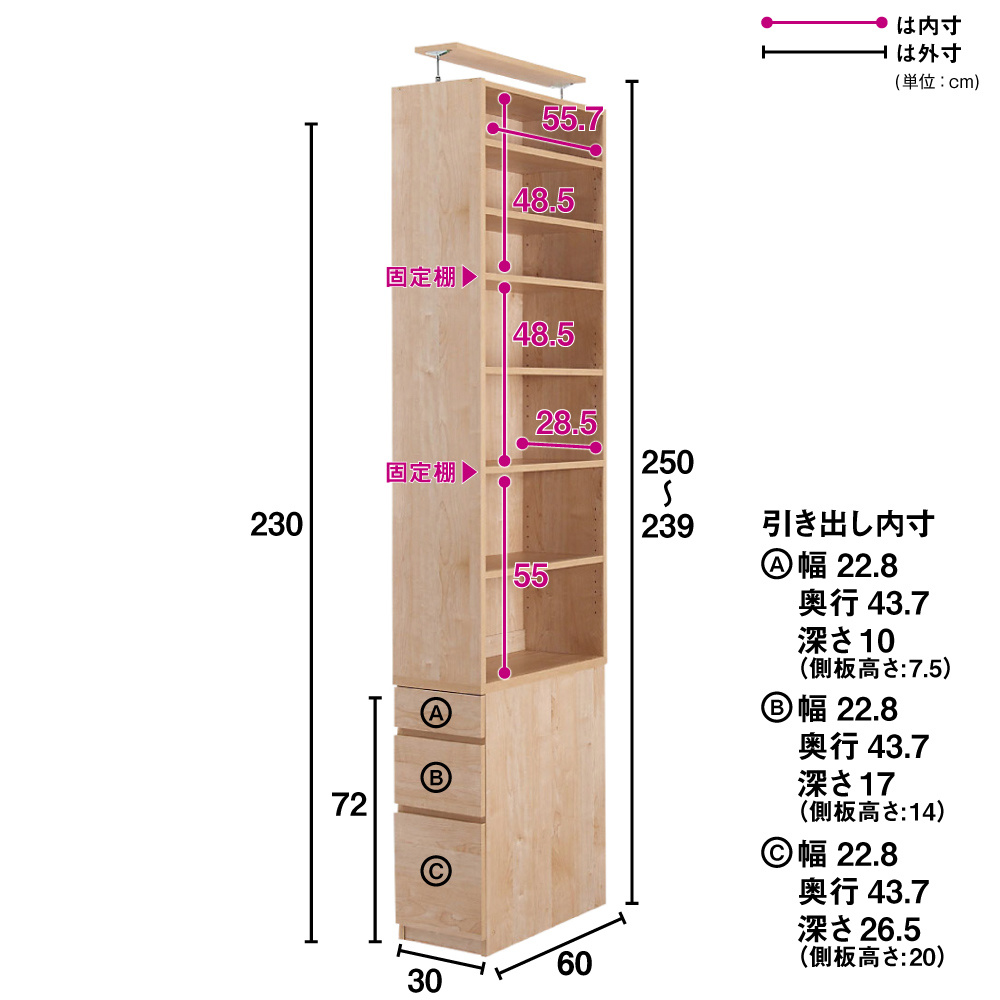 空間をみださない北欧ナチュラルスタイルのつっぱり式デスクサイド収納。天井まで有効に収納できます。幅30cmのすき間収納ラックとしてリビングルーム、ホームオフィスで活躍します。機能とデザインが両立した天然木調の北欧スタイル。リビングダイニングにも調和します。[色の種類]◆天然木調の素材感が特徴のブラウン色とナチュラル色の2種類をご用意。[商品機能・シリーズ]◆北欧風のおしゃれなデスクサイドラックです。◆天井までのスペースを有効活用できる壁面タイプ。機能性と収納力がポイント。◆サイドラックはすき間30cmの省スペースでもたっぷり収納。スリムタイプの本棚、CD、DVDラック、隙間収納としてもご使用できます。◆上台は設置時に左右どちら向きにも設置可能。◆シリーズのデスク天板とサイドラック中天板がフラットになるので作業スペースが広がります。◆深引き出しにはレール付きで開閉もスムーズ。A4ファイルが収納できるサイズ設計です。◆永きにわたってお使いいただけるシンプルデザインは、子どもの学習机と一緒に使うのもお勧めです。◆シリーズには、デスク・プリンターカートをラインナップ、システムデスクとしてご活用いただけます。◆快適なワークタイム・SOHOライフをお楽しみください!
