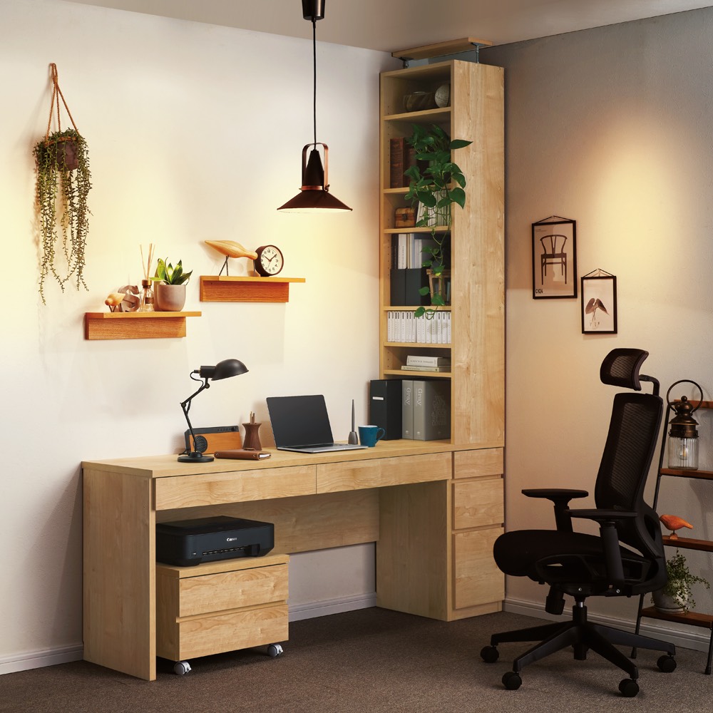 デスク天板とラックの中天板がフラットに。作業スペースが広がります。