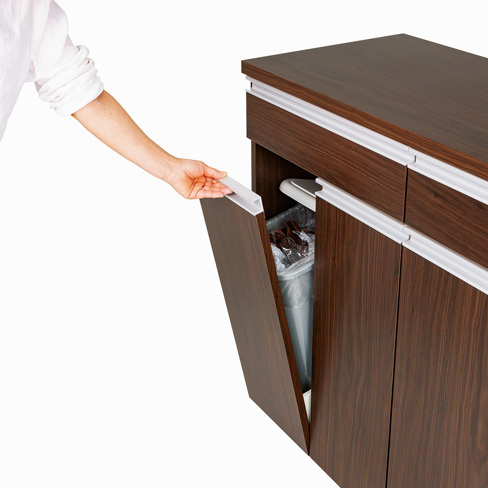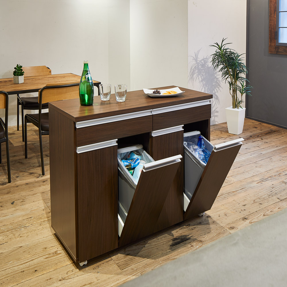 (ア)ダークブラウン ゴミ箱に見えないデザインなので、キッチンとダイニングの間に置いて、アイランドカウンターとしても使えます。
