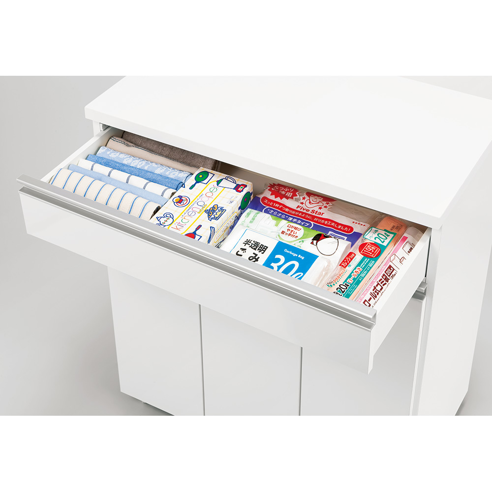 引き出しはゴミ袋のストックやキッチンクロスなどの収納に便利。