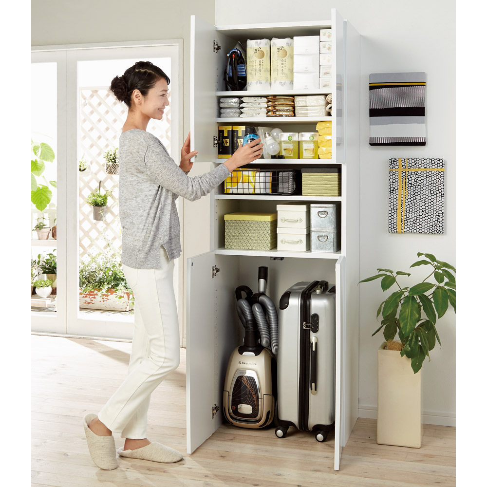 散らかりがちな空間をすっきりさせる、大容量の収納庫です。