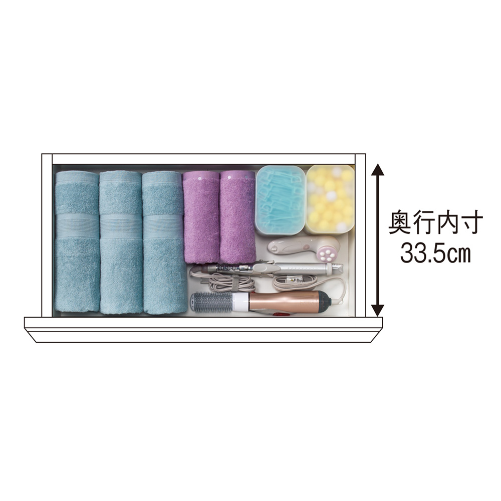 引出しには大判のバスタオルやフェイスタオルがまとめて収納できます。