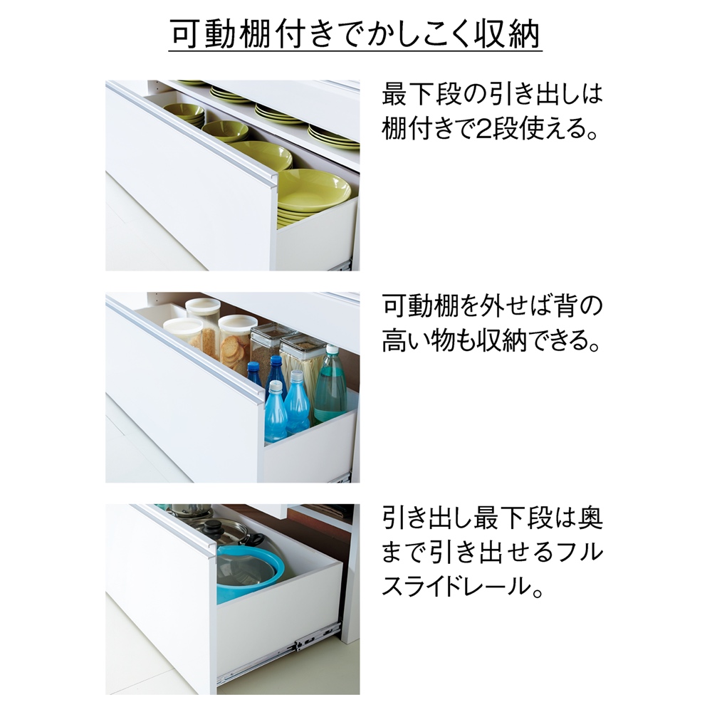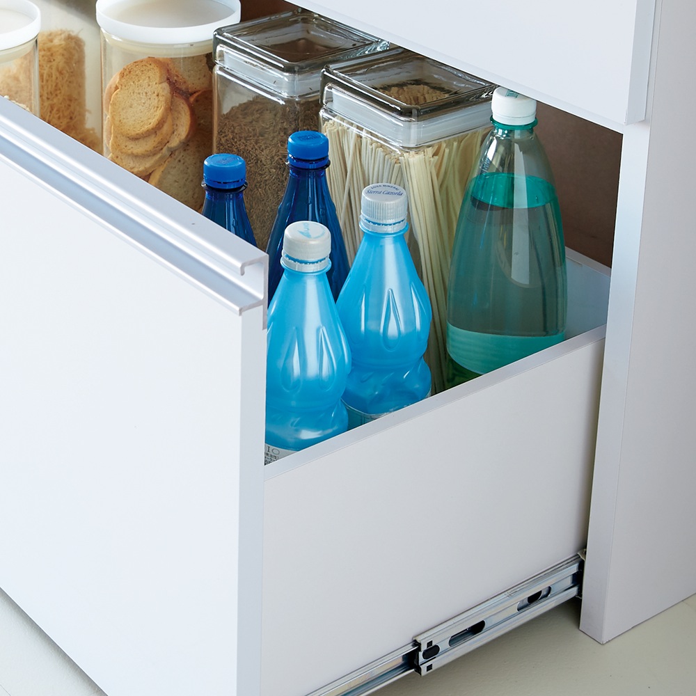 引き出し最下段は奥まで引き出せるフルスライドレール。