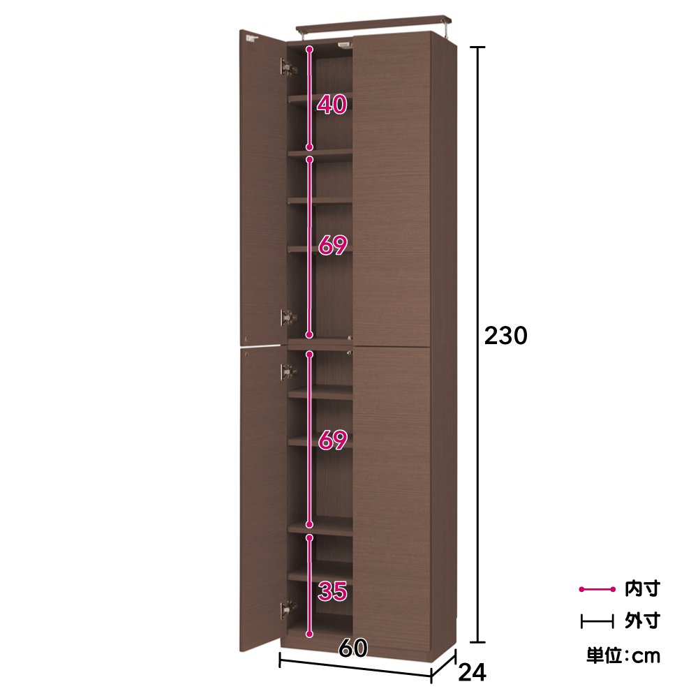 コーディネート例(ア)ダークブラウン ※写真は奥行45cmタイプです。 ※写真の天井高さ240cm