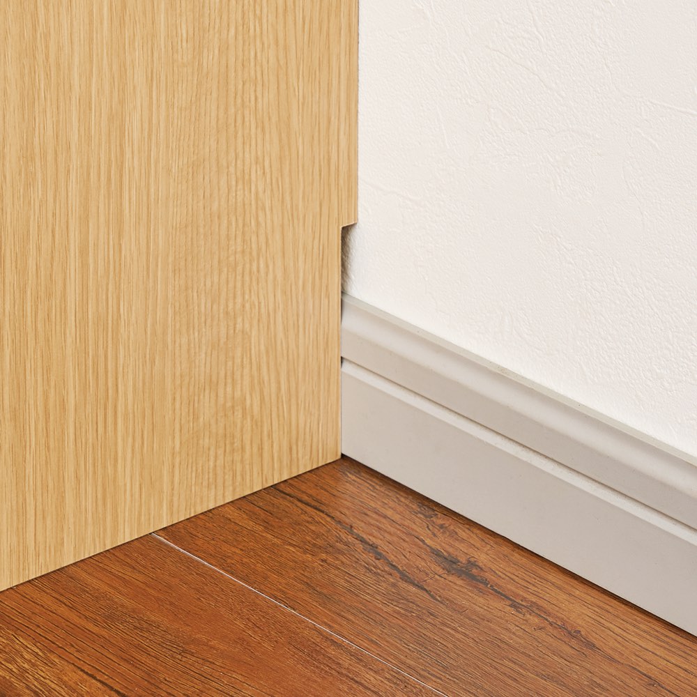 壁にぴったり設置できる幅木よけカット。