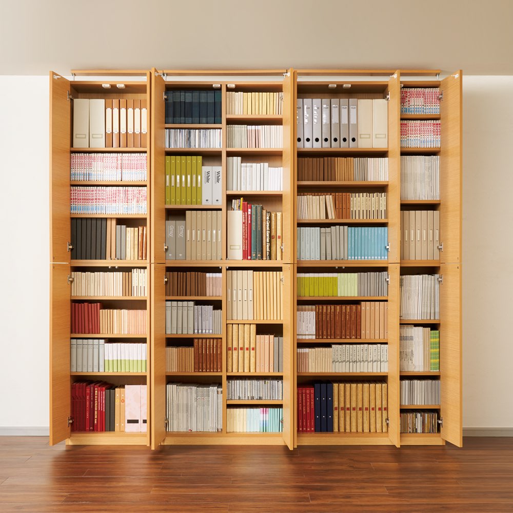 収納例(イ)ナチュラル 開けるとビッシリ!固定棚位置にこだわって効率収納が可能に。