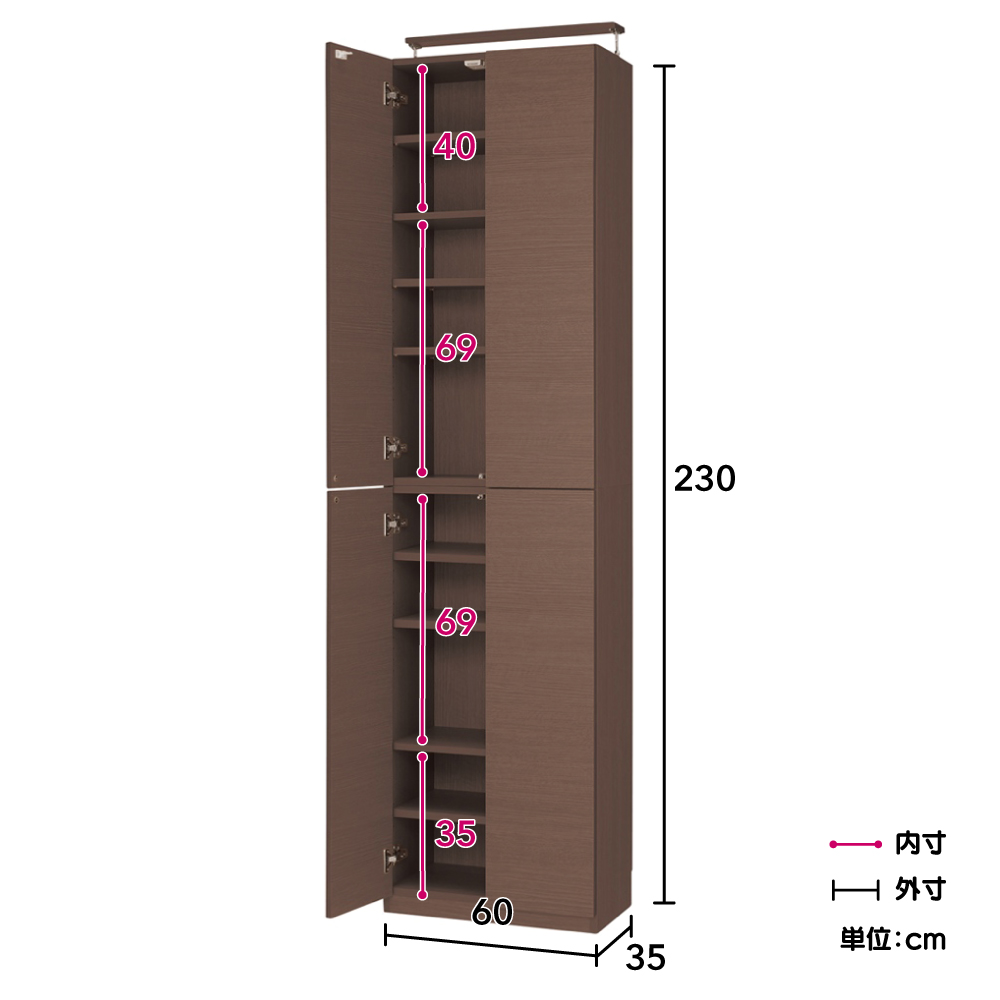 コーディネート例(ア)ダークブラウン ※写真は奥行45cmタイプです。 ※写真の天井高さ240cm