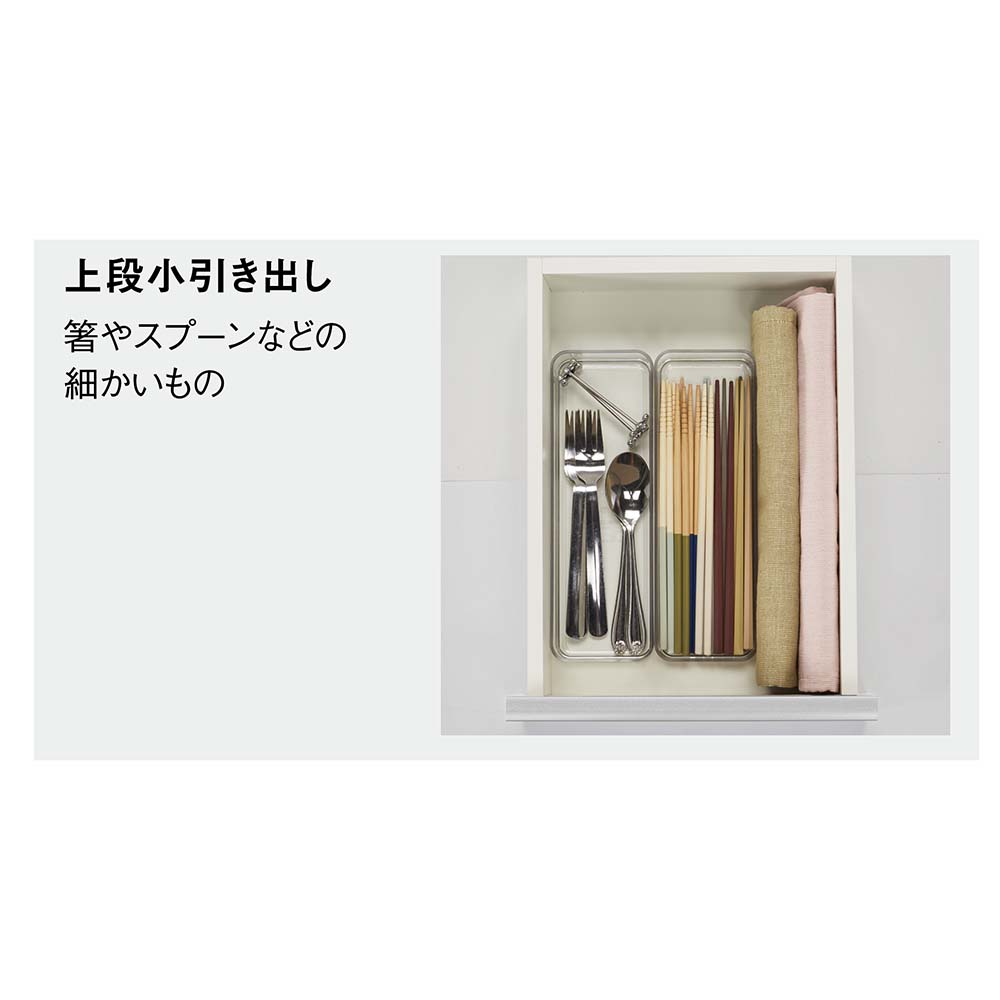 使用イメージ(ア)ホワイト木目 かさばる鍋やフライパンは下段の引き出しに。