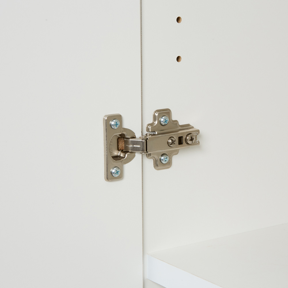 扉は軽く押すだけで開くプッシュオープン式。取っ手がなくスマート。棚板耐荷重は1段あたりやく10kg。