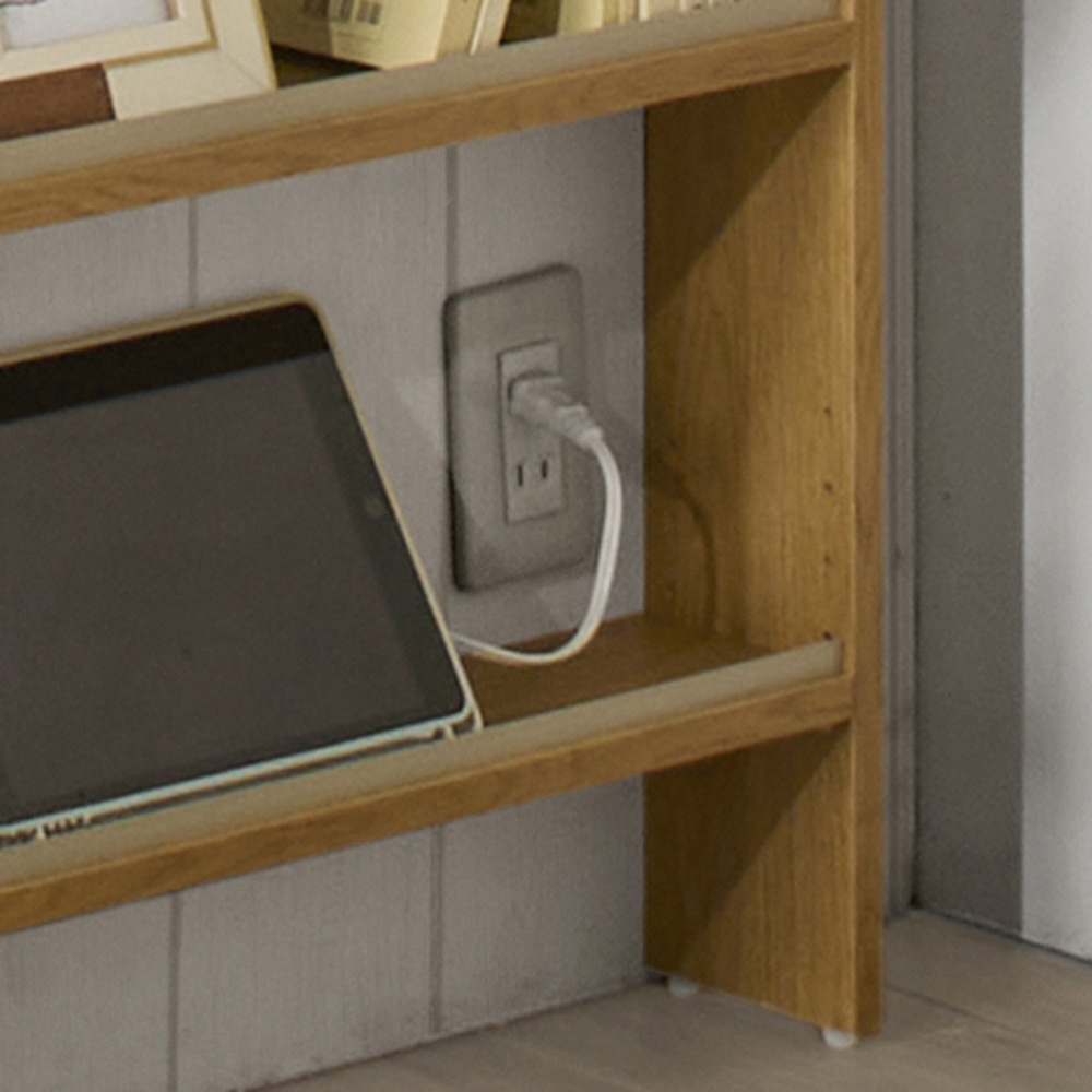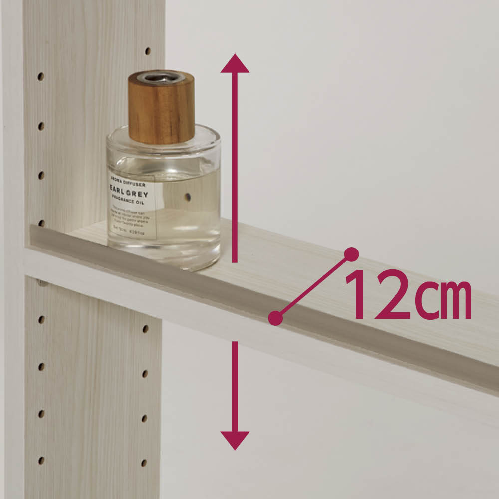 背板がないので、スイッチやコンセントをふさがずに使用できます。可動棚は3cmピッチで高さ調節できます。