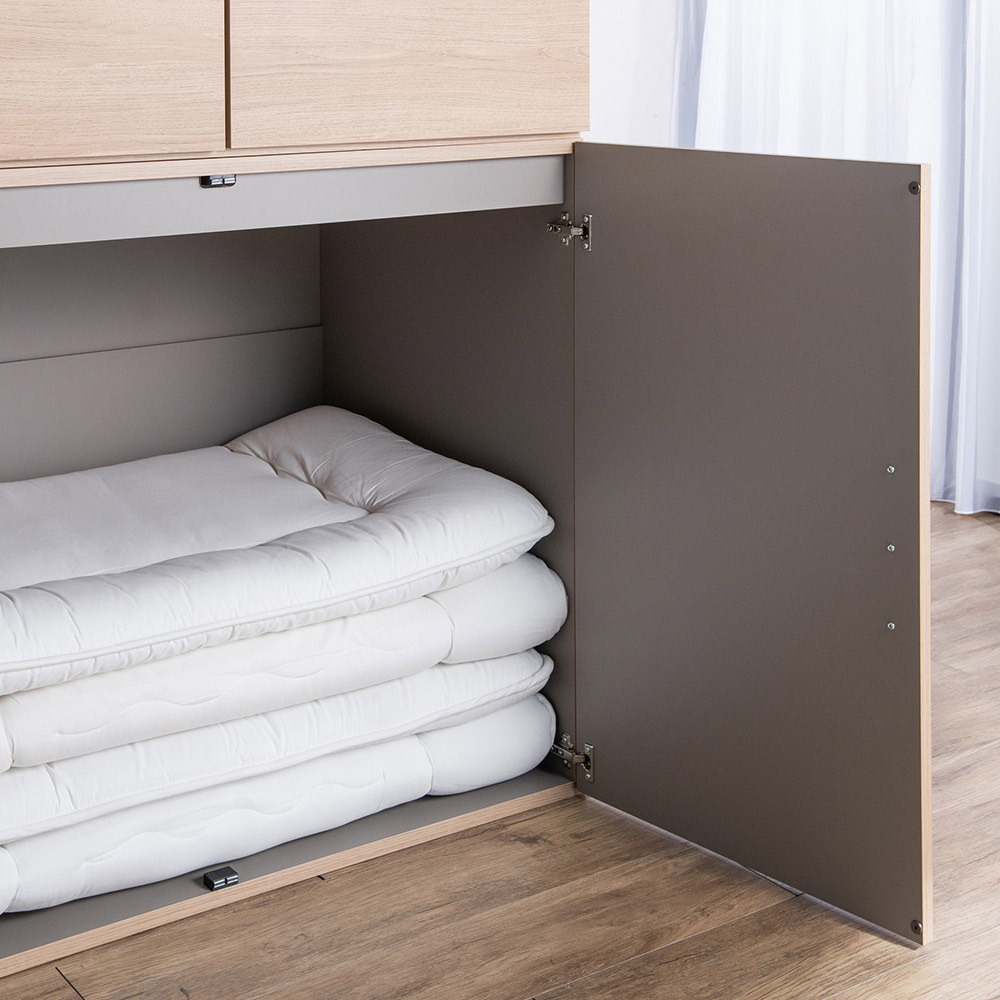 (ア)ナチュラルオーク 内寸は幅約106cm奥行約68cmで、3つ折りの布団も収納できます。押し入れがない、備え付けの収納が少ないお宅にも。
