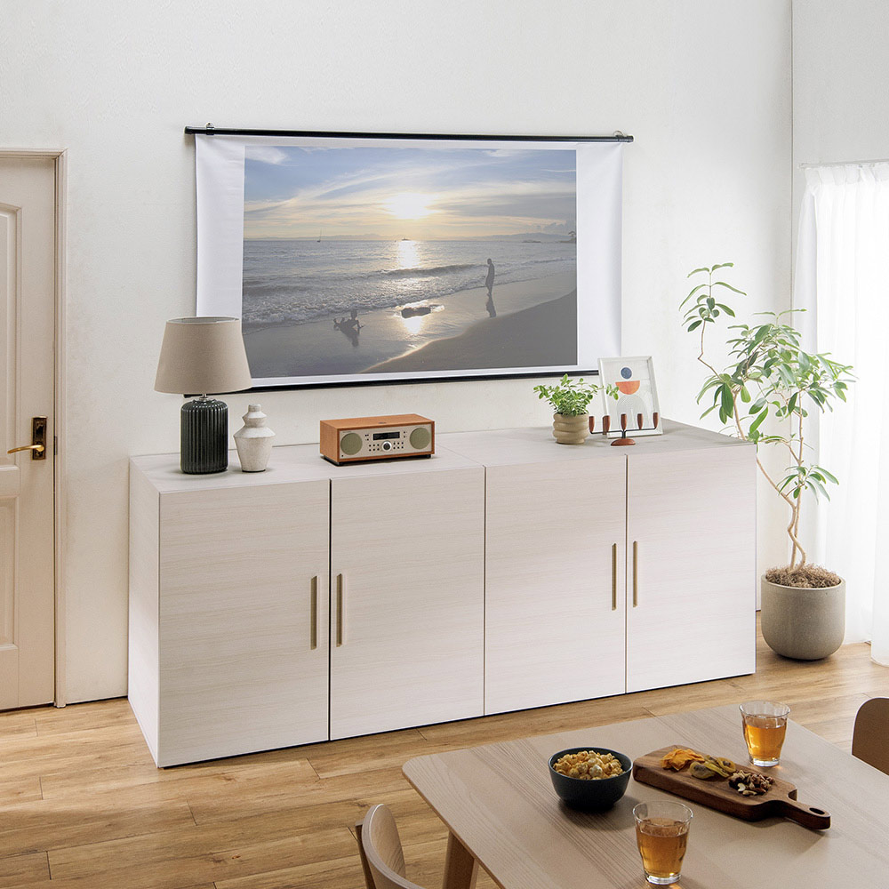 (イ)ホワイト木目 大量収納でも閉じればすっきり。お部屋のインテリアに調和するデザインです。
