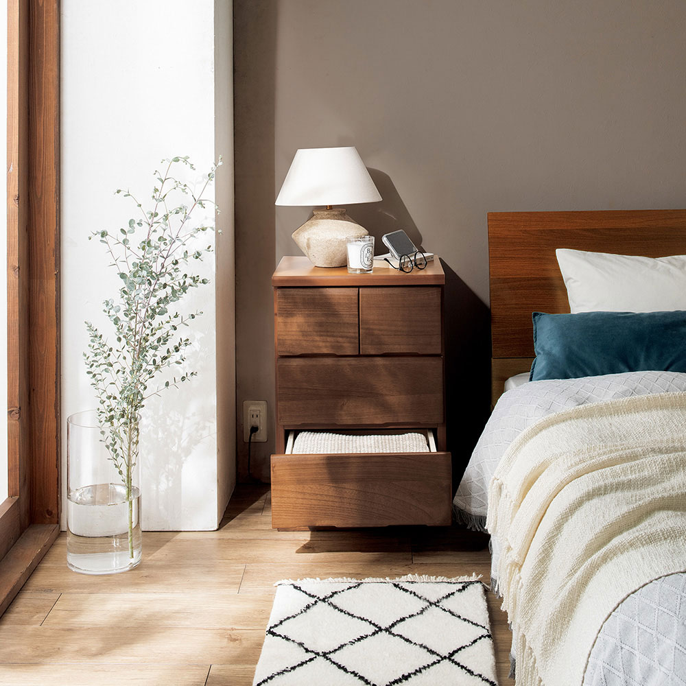 (イ)ブラウン シリーズ商品は豊富なサイズ展開で、幅と高さを自由にお選びいただけます。3段タイプはナイトテーブルとしても。 ※写真は3段・幅45cmタイプです。
