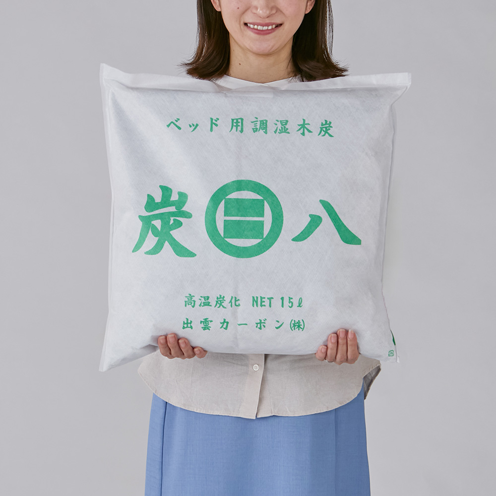 家庭向けの最大サイズであるベッド専用15Lタイプを使用。中身はかる〜い炭なので女性でも簡単に持ち運べます。基本的にはメンテナンス不要で半永久的に使用可能ですが、定期的に天日干しをするとより効果的です。