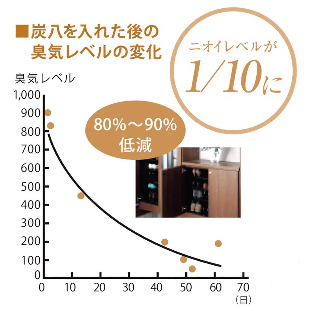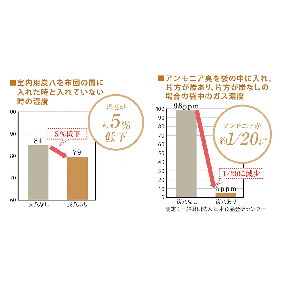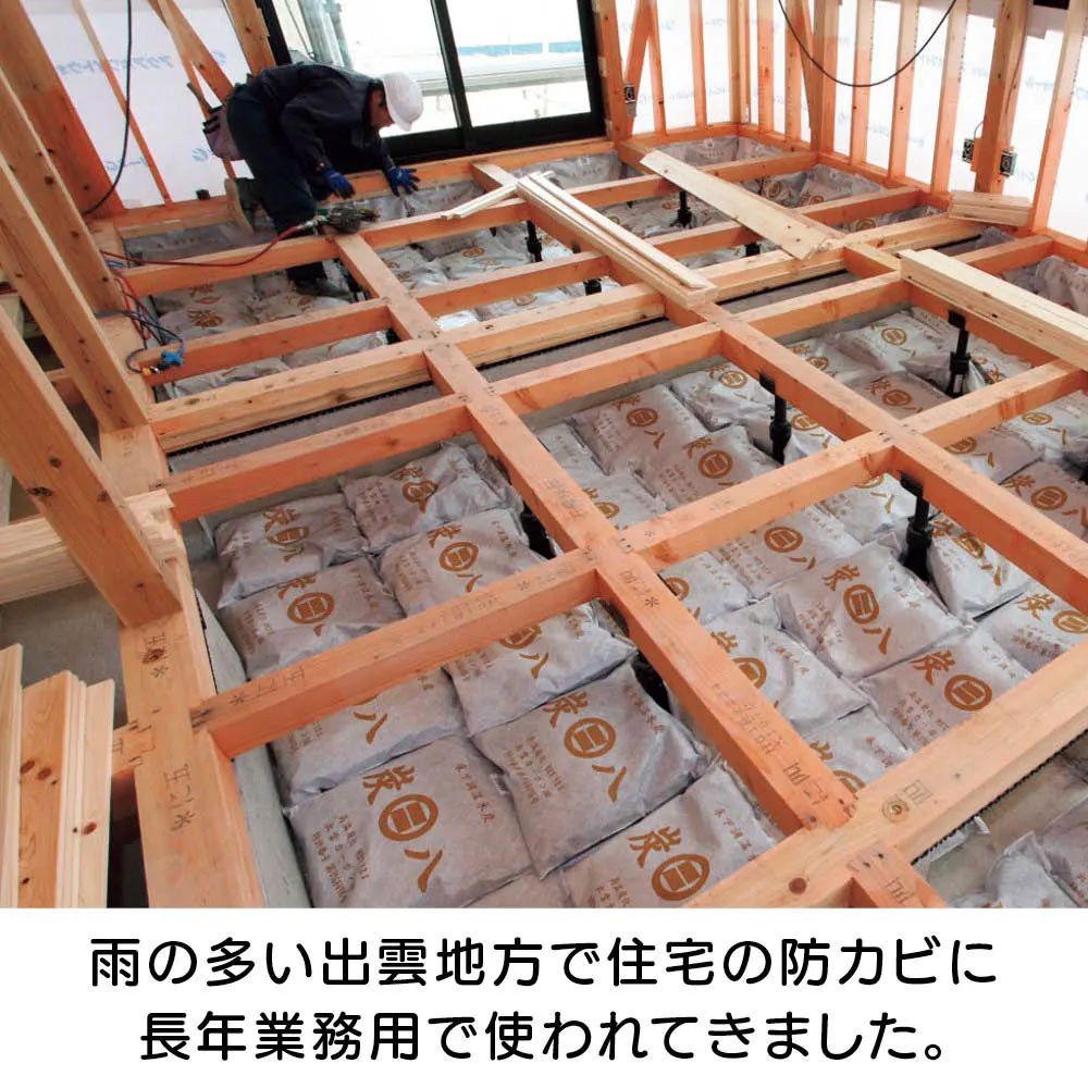 ベッド専用の炭八15リットル計8個付きで、床板の真下に敷き詰めることができます。薬剤不使用、交換も不要で長く使えます。