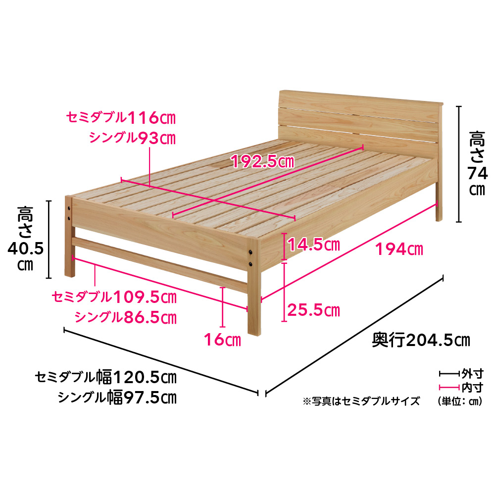 フレームのヒノキ、床面のスノコは九州の山々から間伐した木材を使用しており、塗料・接着剤もF☆☆☆☆基準のものを使用しているので安心。 ※写真はセミダブルタイプです。