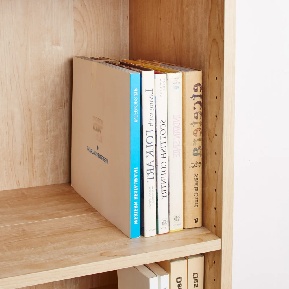 棚板を前後段違いにすれば、収納量も選びやすさもアップ。(奥行内寸19cm)