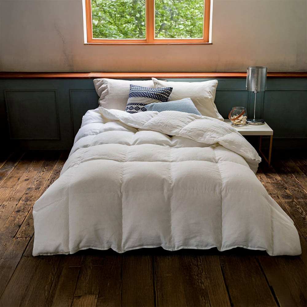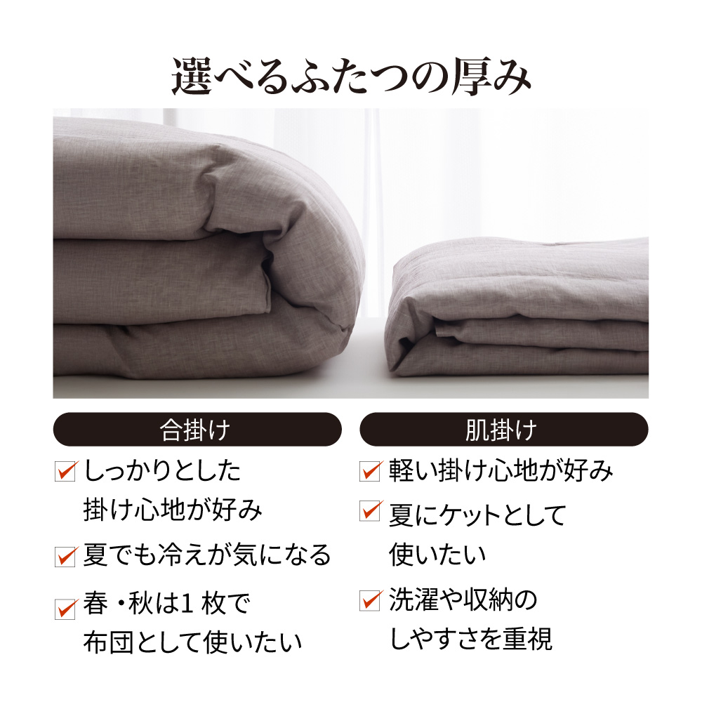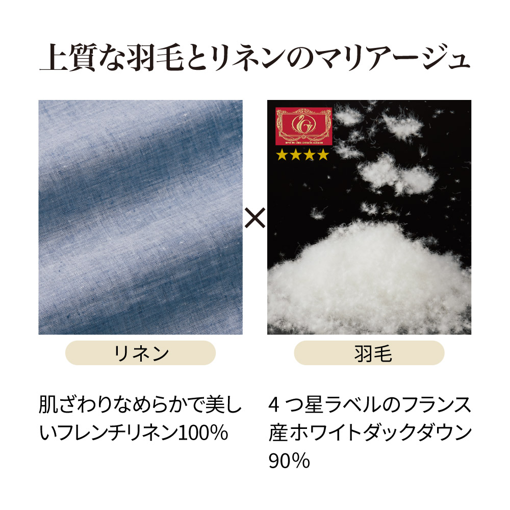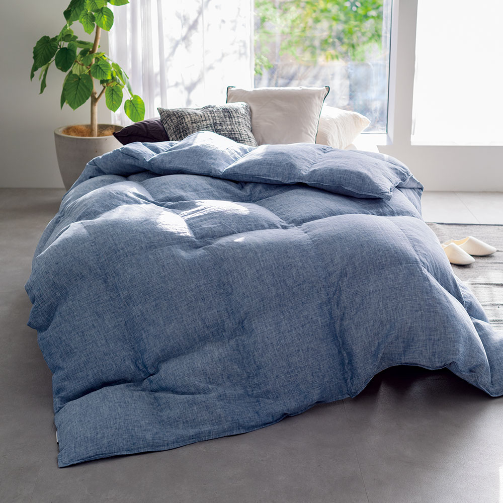 国内で丹念に磨き上げた軽く暖かな羽毛を、高級フレンチリネン100%の生地で包んだ贅沢なダウンケットです。羽毛布団としても使えるボリューム感の合い掛けは、冷え予防にも◎。使うほど肌に馴染み、愛深まる。贅沢な羽毛×リネンのマリアージュ。(ア)ブルー 国内で丹念に磨き上げた軽く暖かな羽毛を、高級フレンチリネン100%の生地で包んだ贅沢なダウンケットです。羽毛布団としても使えるボリューム感の合い掛けは、冷え予防にも◎。モデル使用は肌掛けタイプです。