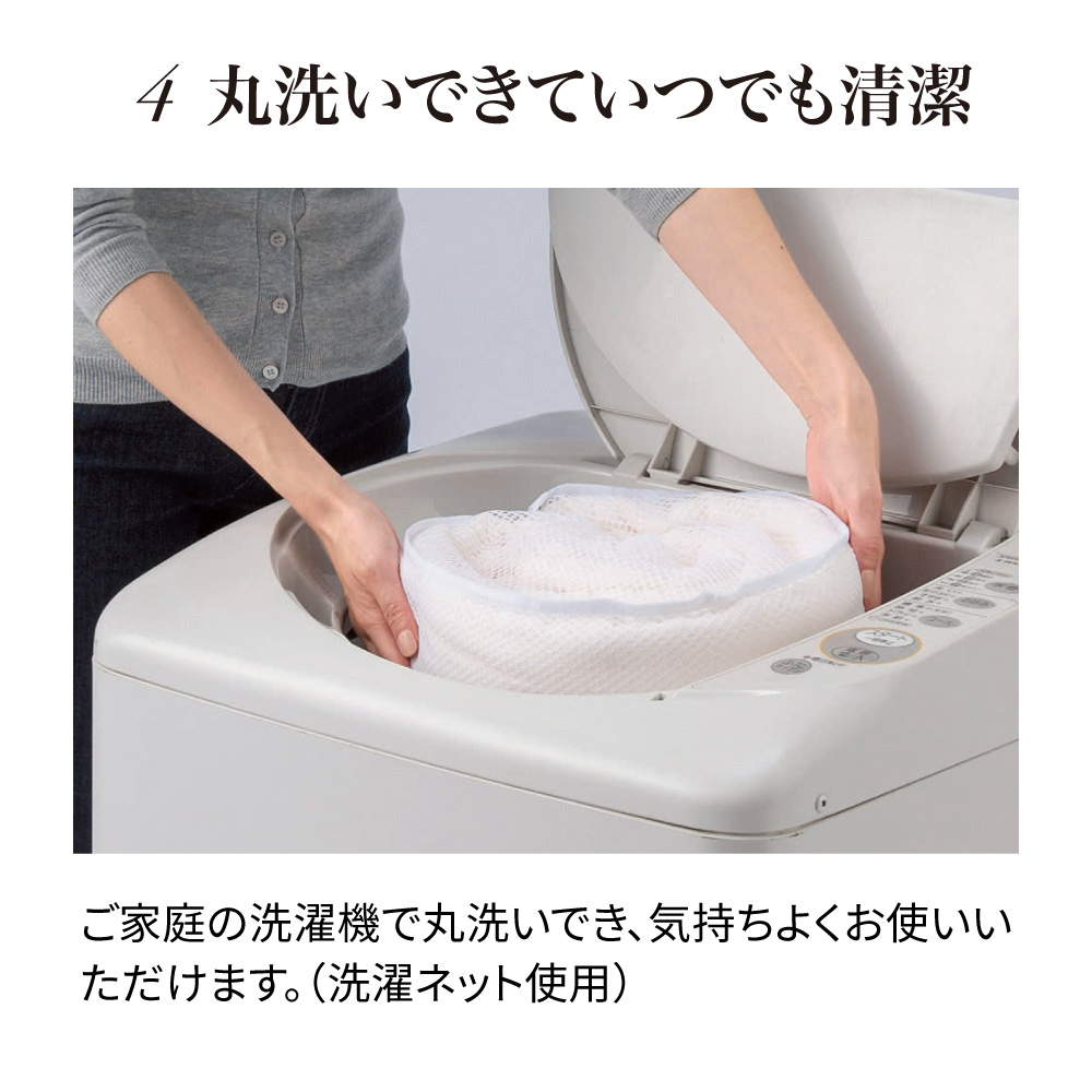 布団をご家庭で洗濯する際は必ずお手持ちの洗濯機の説明書をご覧ください。メーカー・機種・容量により布団の洗濯ができない場合はクリーニング店、大型洗濯機のあるコインランドリー等での洗濯をおすすめします。