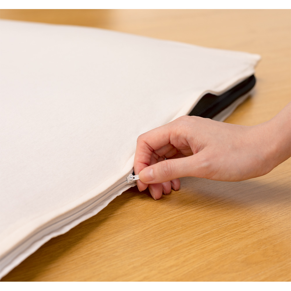 肌ざわりが心地よい綿100%ニット。専用カバーはご自宅の洗濯機もOK。