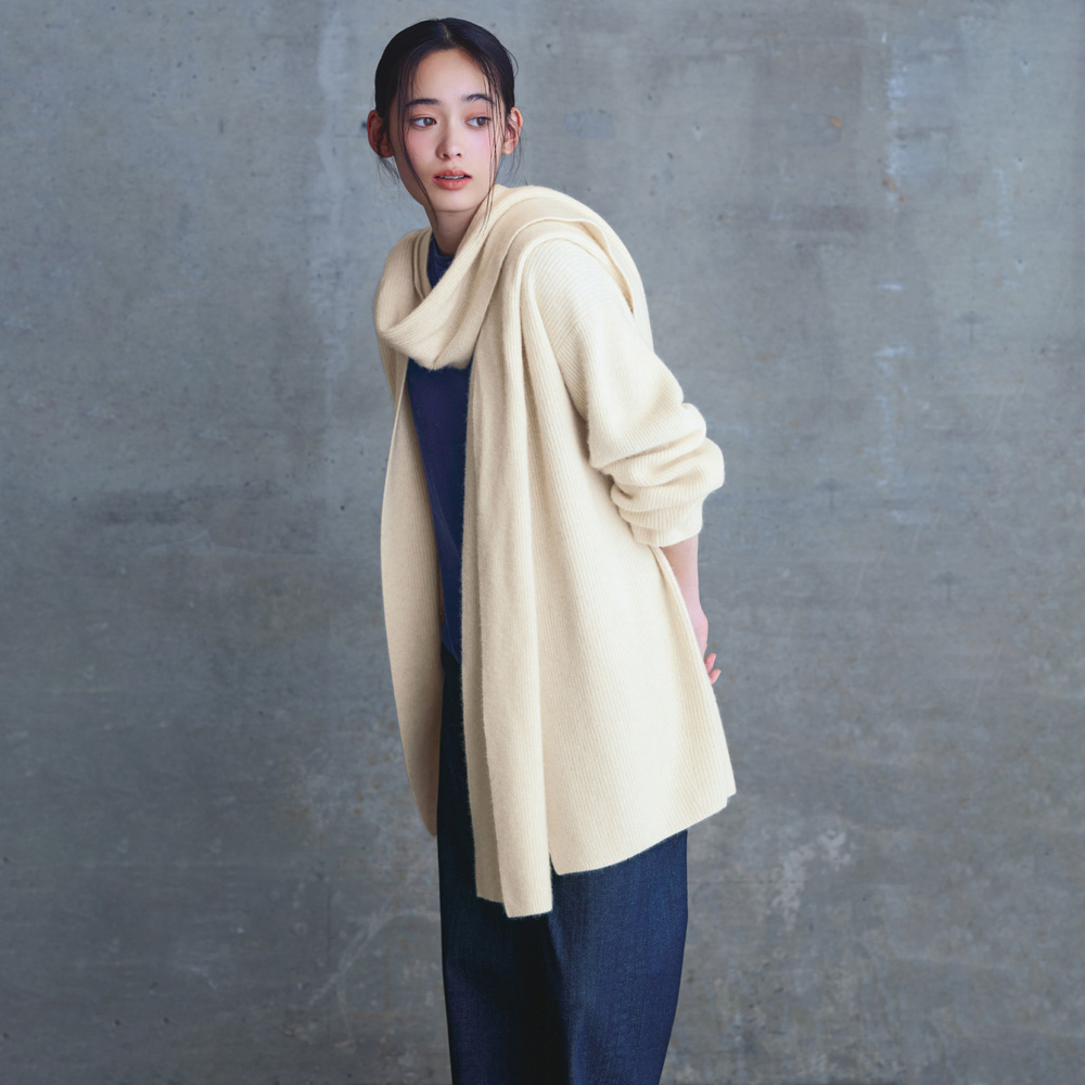 フーディストール&コーディガンで着こなせば冬感香るスタイルに。 コーディネート例