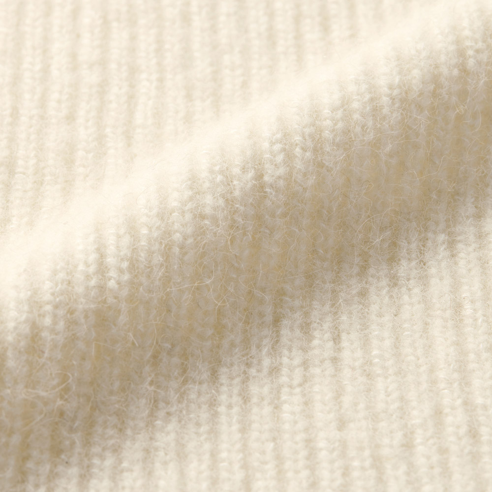 ざっくりとした片畦編みで、柔らかな肌ざわりとヘアリーな風合いに。
