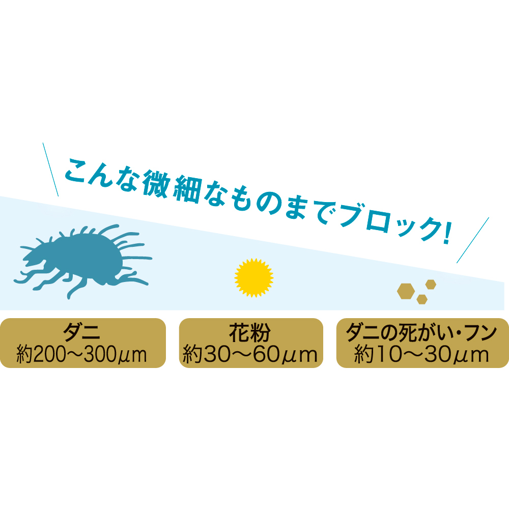 ダニ、花粉、ダニの死がい・ふんなど微細なものまでブロックします。