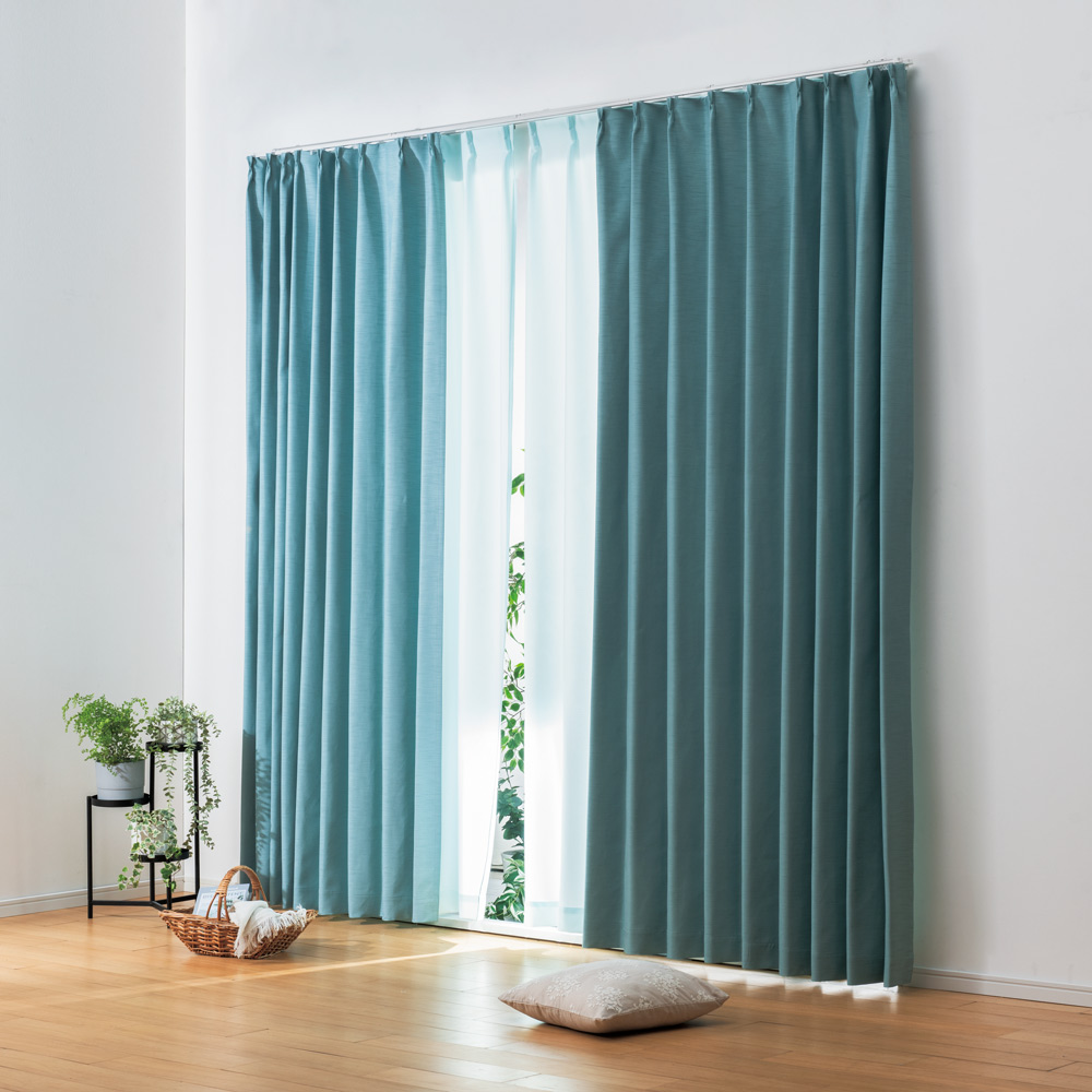 美しい見た目に機能も充実、遮熱効果で暑さもやわらぎ、心地よく爽やかに過ごせます。表情のある織りの風合いと落ち着いた光沢が上品なシャンタン生地のカーテン。窓辺を大好きなカラーで彩れば、お部屋の印象が大きく変わり、差し込む夏の光も表情豊かに。遮光1級、遮熱・保温、遮音の高機能で夏の毎日を快適に。別売りのカラフルレースカーテンと合わせ使いで、彩りも快適さもぐんとアップします。【ポイント1】遮光率99.99%!強い日差し対策にアクリル樹脂コーティング加工付き。まぶしい朝日や西日を遮り日焼けからガード。明かりが外に漏れにくいので、プライバシー対策にもなります。