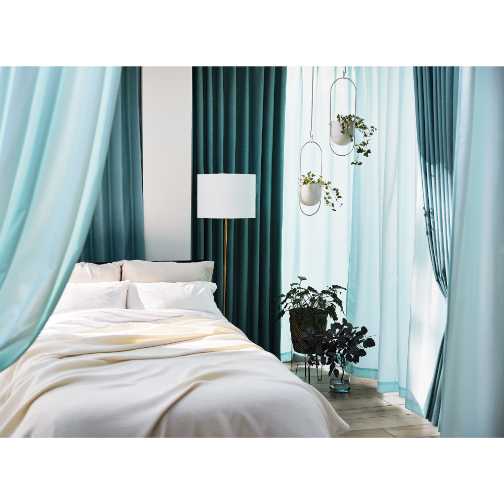 • (オ)ミントグリーン(写真はシャンタン生地の遮光・遮熱・遮音カーテン (オ)アップルグリーンとの同色系コーデ) さわやかでリラックス効果のある「グリーン系」 ※お届けはレースカーテンのみになります。(100cm幅は2枚組・200cm幅は1枚)