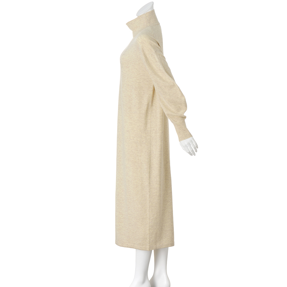 MINIMAL CHIC私らしさが輝く洗練ベーシックシンプルだから際立つ研ぎ澄まされた洗練とセンスが光る拘りで、着ればたちまちお洒落な印象に!今どきニットはフォルムにも自信あり。一着で着こなしが完成し、動きやすく、暖かい…。ふんわり袖コンシャスなデザインに女性らしさも盛り上がる昨年人気のニットワンピースを、今年は肌映りのきれいなメランジ調オートミールでご紹介です。ボディラインを響かせない程良いゆとりとストンとした落ち感も、わずかに裾を内側に入れたストレートラインによる細見え効果も健在!ニッティング技法ならではの編み目の増減を駆使した美しいフォルムを、絶妙ブレンドのウール混糸をハイゲージの天竺編みにした軽やかな着心地と共に楽しんで。