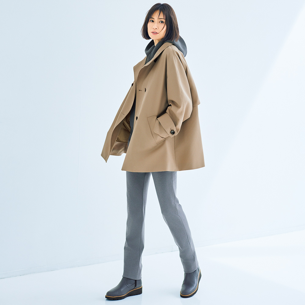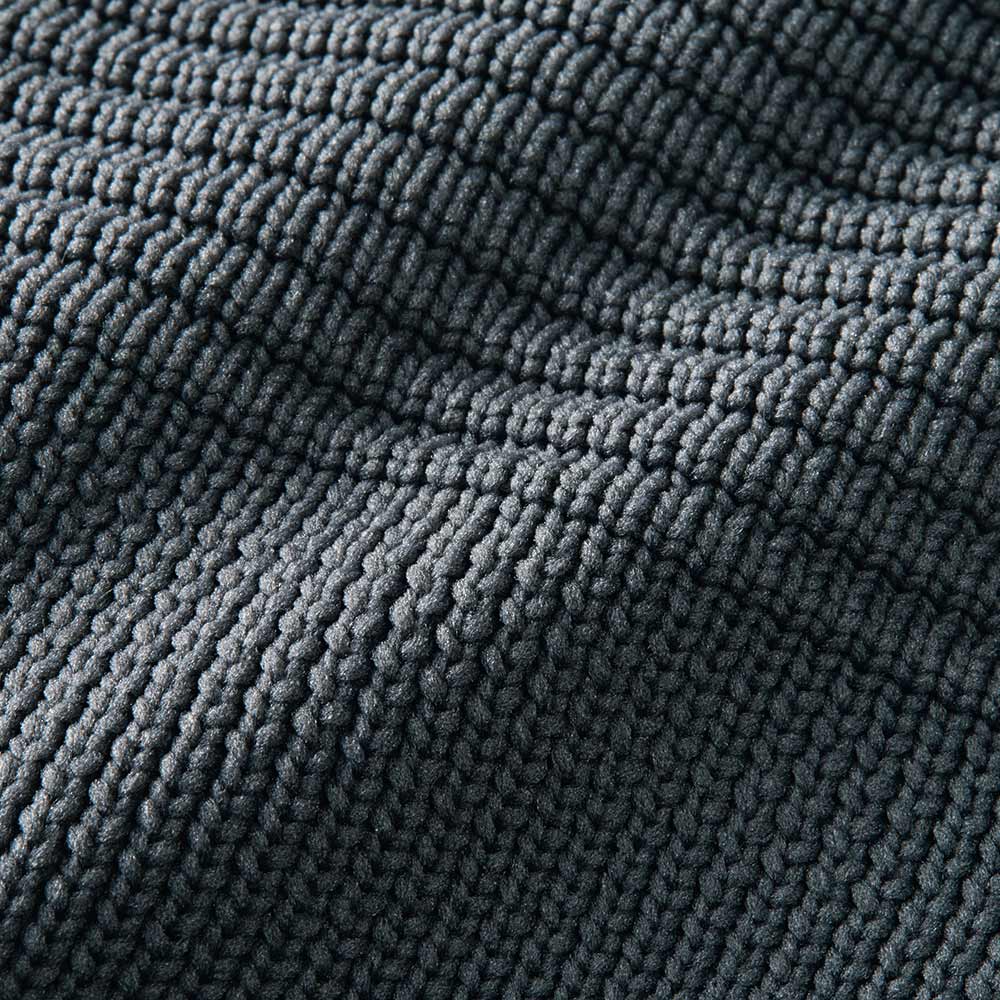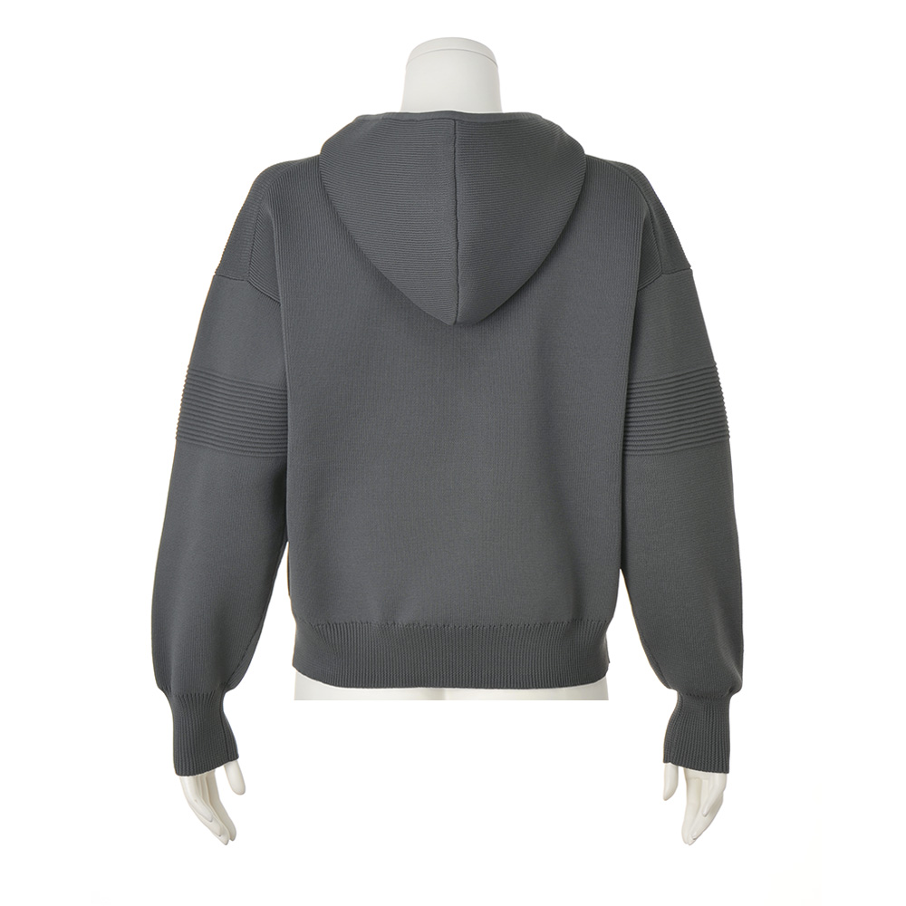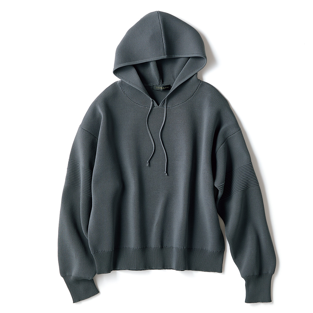 MINIMAL CHIC私らしさが輝く洗練ベーシックシンプルだから際立つ研ぎ澄まされた洗練とセンスが光る拘りで、着ればたちまちお洒落な印象に!フォルムだけじゃない、着心地だって快適。魅力あふれるフォルミックニットのパーカは、ポリエステル糸を4本取りにしてしっかりと編み上げた総針編み。適度にハリ感があるのでふっくら印象的な形を表現でき、しかも意外なほど軽い着心地。サラリとした肌触りも快適です。二の腕辺りにはタック編みで表現したボーダー切り替えが、フード周りには同素材のコードがあしらわれているのもさりげないアクセント。分量感のあるフォルムと短め丈の旬バランスが、カジュアルスタイルをアップデートしてくれます。≫ POINT身体のラインを拾わないしっかりとした編み地は軽く、ドライタッチ、イージーケアにも大満足。