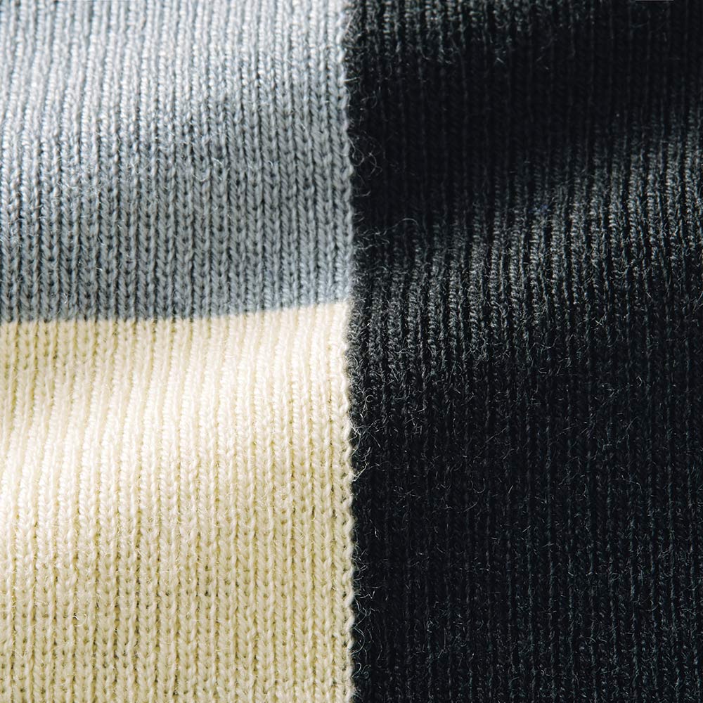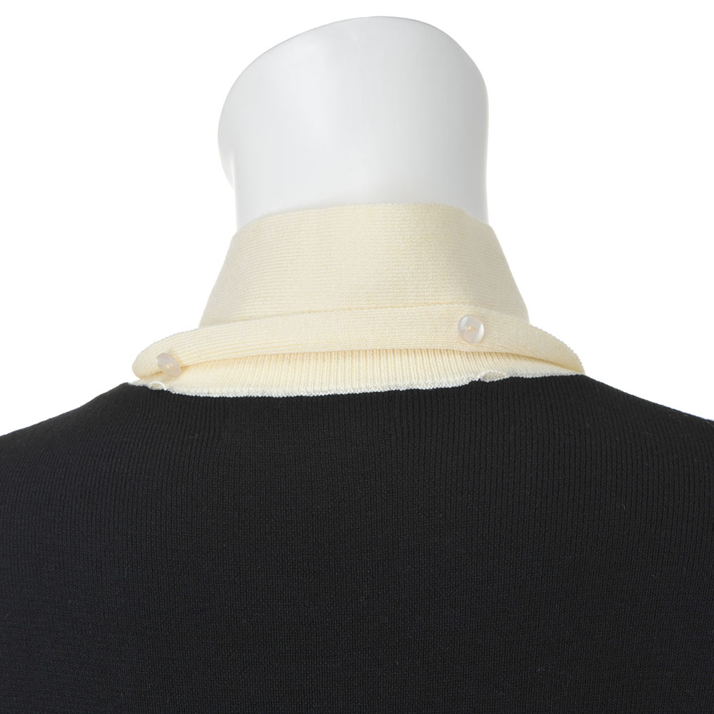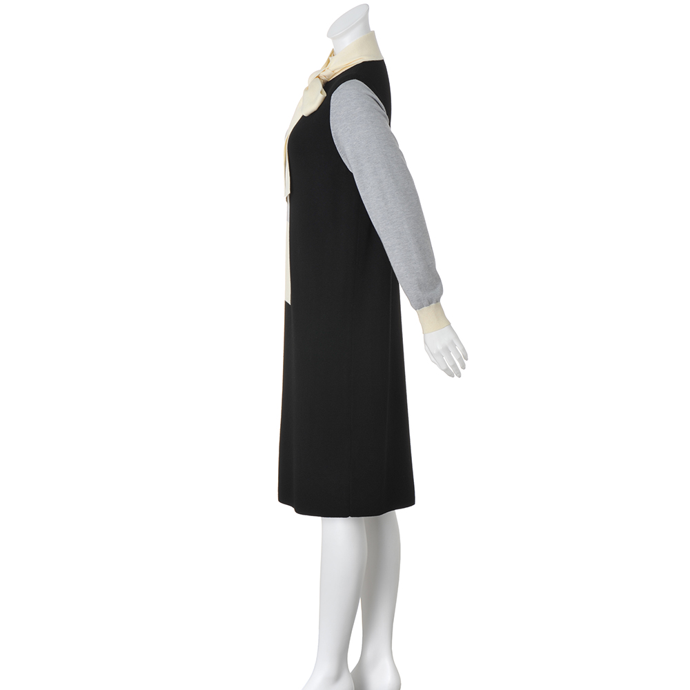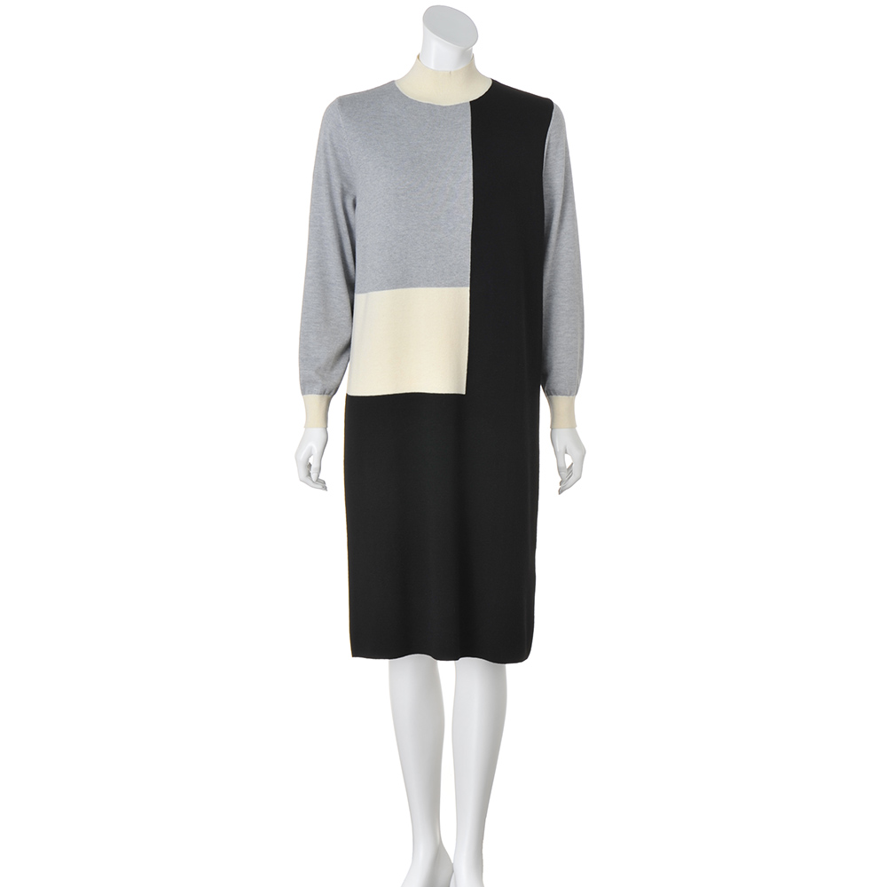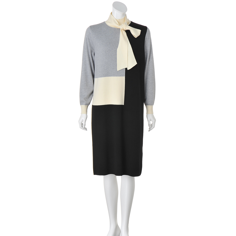 Parisien Style街に映えるフレンチシック。シンプルで上品だけど、遊び心や冒険心も忘れない。ポジティブにお洒落を謳歌するパリっ子たちをお手本に、この春はパリジャンスタイルを纏いませんか?レディーな着こなしもパリジャンのお得意。モダンで個性的なイメージのカラーブロックも、グレー×オフホワイト×ブラックのベーシックな3色使いならこんなに上品!Iラインシルエットの美しさが際立つよう、身頃はボディラインが響きにくいしっかりとした総針編み、袖は軽くしなやかな天竺編み、ハイネック部分と袖口は伸縮性の高い糸を使ったリブ編み…、と編み地選びにも拘って。ボウタイは後ろ襟にさりげなくあしらったループとボタンで付け外しが簡単。レディーな雰囲気のボウタイと、凜としたハイネックを、自由気ままに選びたい。≫ POINTインターシャによるカラーブロッキングと付け外しできるボウタイで、レトロモダンなフレンチスタイルが完成!
