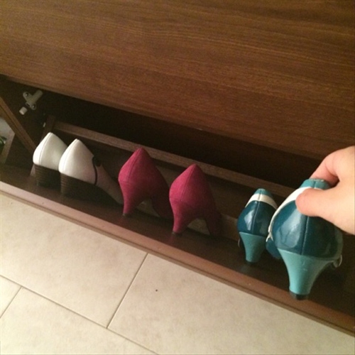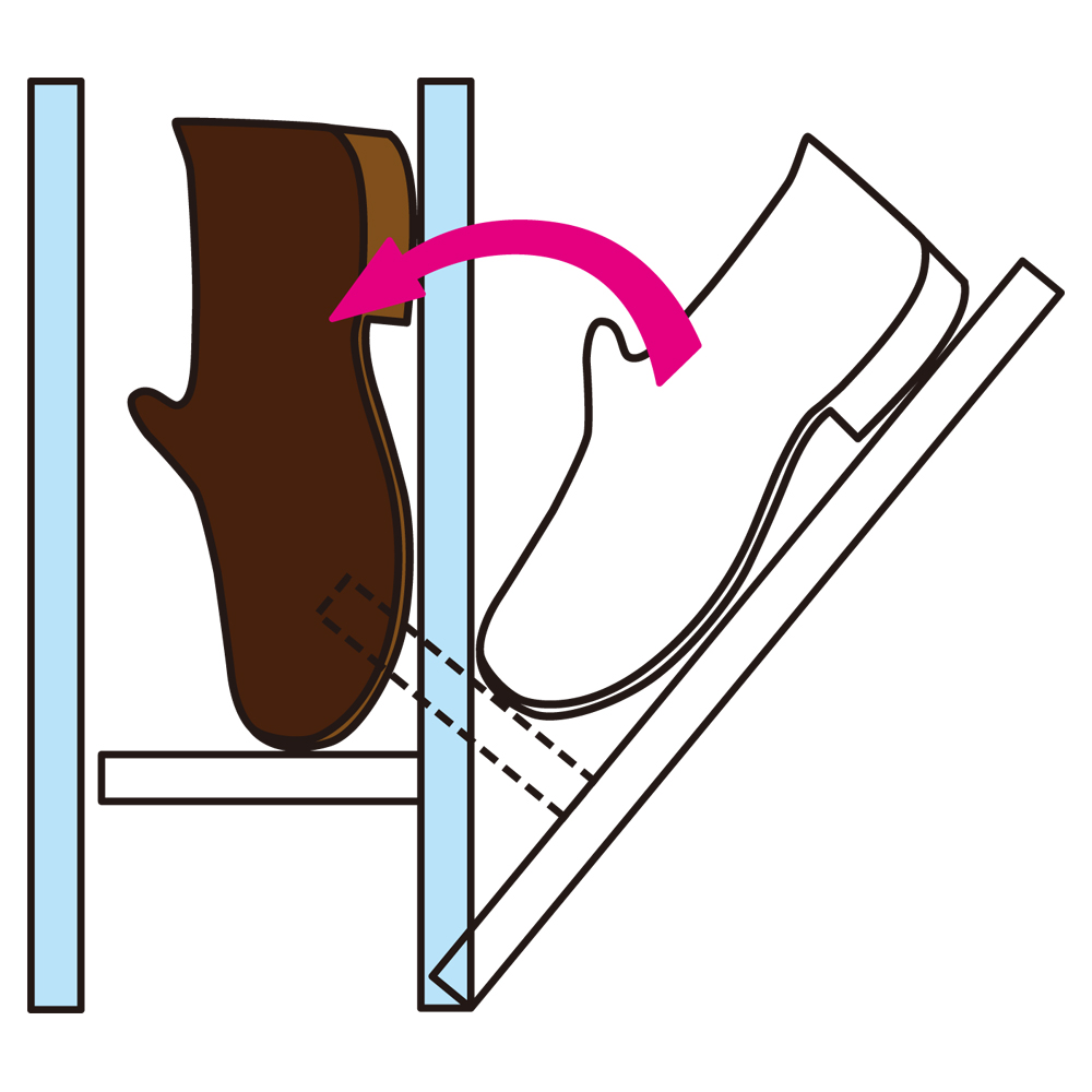 上から靴を入れる方式なので、奥行きをとらず省スペース収納が実現できます。