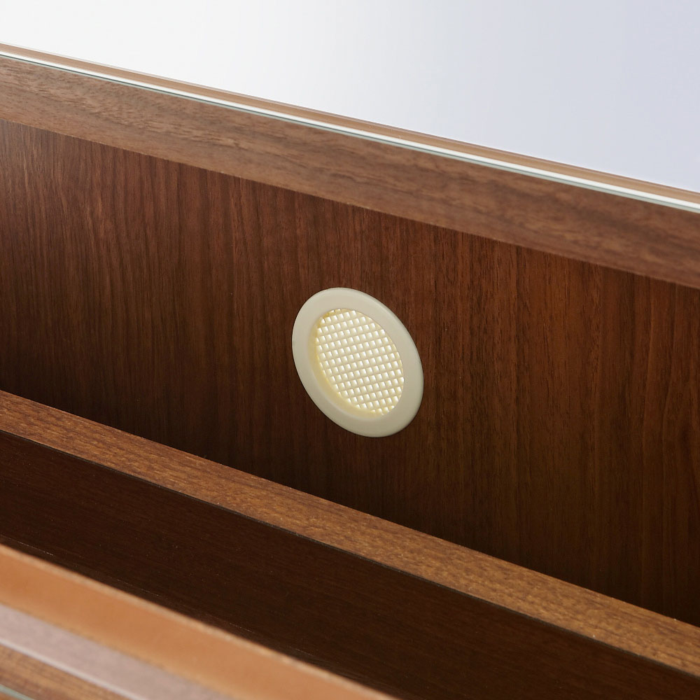 フラップ収納の棚内も美しく化粧が施されており、細かいところまでこだわった造りです。