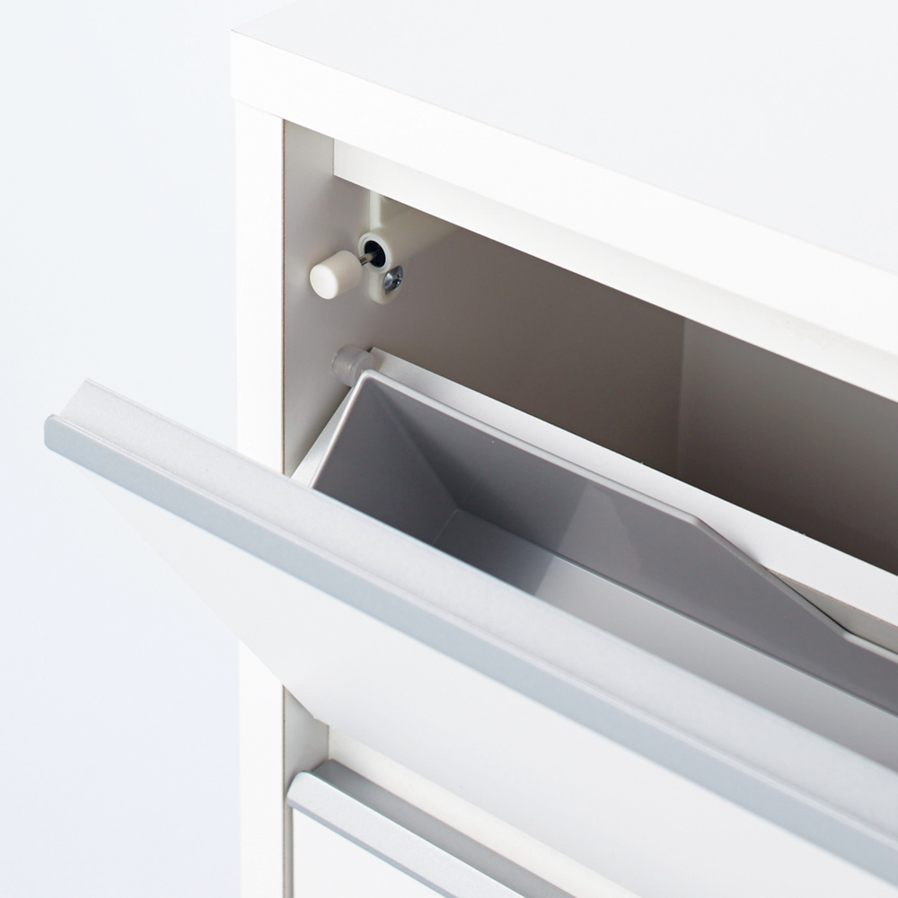 音がなく静かに閉まるスリムな下駄箱。フラップ式で玄関に溢れた靴をすっきり効率良く収納できます。都市型住居のコンパクトな玄関廊下にもぴったり。安心の国産家具(日本製)です。玄関を圧迫感なく、すっきり収納できる人気の薄型フラップ式のシューズボックス!●玄関を広々と使える本体奥行18cm(脚部奥行23cm)の薄型設計のスリムでおしゃれな下駄箱です。●備え付けの下駄箱には入りきらない靴を、場所を取らずにスマートに設置できるシューズ収納庫です。●収納部は開閉する時に場所をとらない『フラップ扉』を採用。狭い玄関での使いやすさを考えました。●フラップ扉はゆっくり、静かに開閉できる構造なのでバタンと大きな音がしません。●扉を開いて上から差し込むように収納する仕様で、出し入れも簡単。下段の方もストレスなく出し入れすることができます。●狭い玄関を広々とお使い頂く為にギリギリまで薄く開発しましたので廊下にも設置できます。〜快適な玄関収納を実現する為に細部にまでこだわりました。〜●玄関のスペースやお好みに応じて幅・高さ・色が選べます。●玄関の床の傾斜を考慮して、足元には約1cm調整できるアジャスターが付いています。●本体の背面には湿気がこもらないように通気口を取り付けました。●転倒防止用具付きで、安心してお使いいただける薄型下駄箱です。●国産家具メーカーとディノスが共同開発しました。ここでしか買えないディノス企画商品です。〜信頼と安心の国内生産品〜●国内の家具工場で職人がひとつずつ丁寧に仕上げました。●完成品でお届けいたしますので届いたその日からすぐにお使いになれます。●日本製ならではの高品質をお楽しみください。〜新築やリフォーム、模様替えの時にもおすすめの逸品〜●お引越しや模様替えのタイミングで玄関のスペースを便利に有効活用してみませんか?●高価な備え付け家具やリフォームよりも、リーズナブルに新生活を始められます。●靴の収納や玄関のインテリアにディノスでしか買えない企画商品を取り揃えております。●日本製、国産の安心感。本体完成商品もお勧めポイントです。