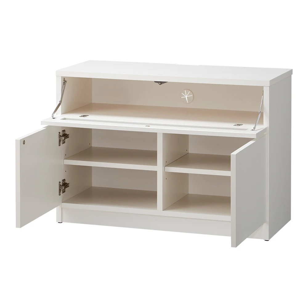 寝室がシアタールームへ早変わり。誰にも邪魔されない空間で、独り占めのホームシアター空間を手に入れることができる、薄型テレビ台。高さは2タイプからお選びいただけます。寝室がシアターに!人気の薄型テレビ台シリーズ寝室があっという間にシアタールームへ早変わり。リラックスした空間で誰にも邪魔されず、まるで映画館のような鑑賞時間を独り占めできます。薄型&絶妙な高さでベッドでも快適視聴奥行35cmの薄型設計と最適な高さ設計により、寝室で大迫力のシアター気分を味わえるテレビ台で、寝ながらも座りながらも快適な映画鑑賞体験が可能です。ベッドの高さに合わせた2タイプがあり、空間を広く見せつつ、どの高さでも素晴らしい映像体験を楽しむことができます。ガラス扉で操作も簡単!埃を防ぐ機能的なAV機器収納AV機器収納部はガラス扉を採用しているため、扉を閉じたままでデッキの操作が可能です。また、扉付きなのでほこりの侵入を防ぎます。さらに、配線がスムーズに行えるコード穴付きで、機能性も抜群です。調整可能な可動棚で大容量収納扉内の可動棚は3cm間隔で3段階に調整でき、収納物の大きさに合わせて最適なポジションに変更可能です。CDなら背表紙を手前にして約280枚(前後2列)収納できます。可動棚板が2枚付いているので、多様な収納ニーズに対応します。軽く押すだけで開閉!スマートなプッシュオープン式扉扉はプッシュオープン式で、軽く押すだけで簡単に開閉できます。取っ手がないので、シンプルで洗練されたデザインに。すぐに使える完成品。丁寧に仕上げた安心の国産家具組立不要の完成品で、届いたらすぐにご利用いただけます。国内の熟練した匠たちが一点一点心を込めて丁寧に仕上げており、日本製ならではの高い品質と安心感を提供します。※扉のプッシュラッチの取付(差し込みのみ)はお客様にてお願いしております。写真は別売りのチェスト(幅80cm高さ55cmとの組み合わせです。)