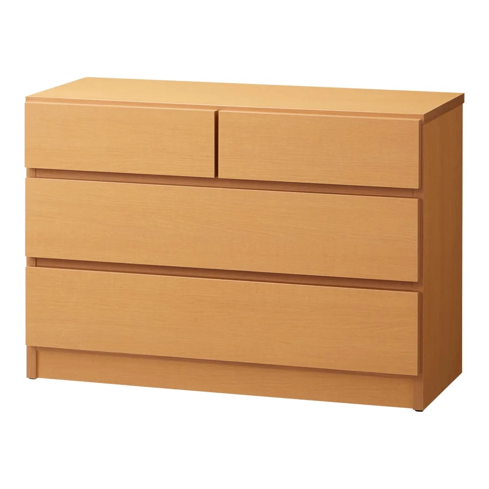 引き出しは全段レール付きで、たっぷり収納しても開閉がスムーズ。(写真は高さ70cmタイプのチェストです。)
