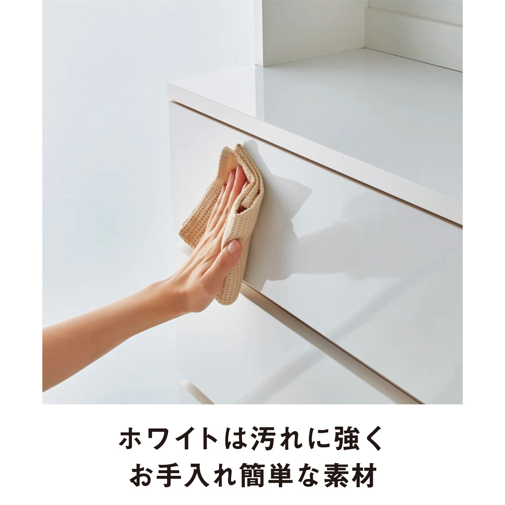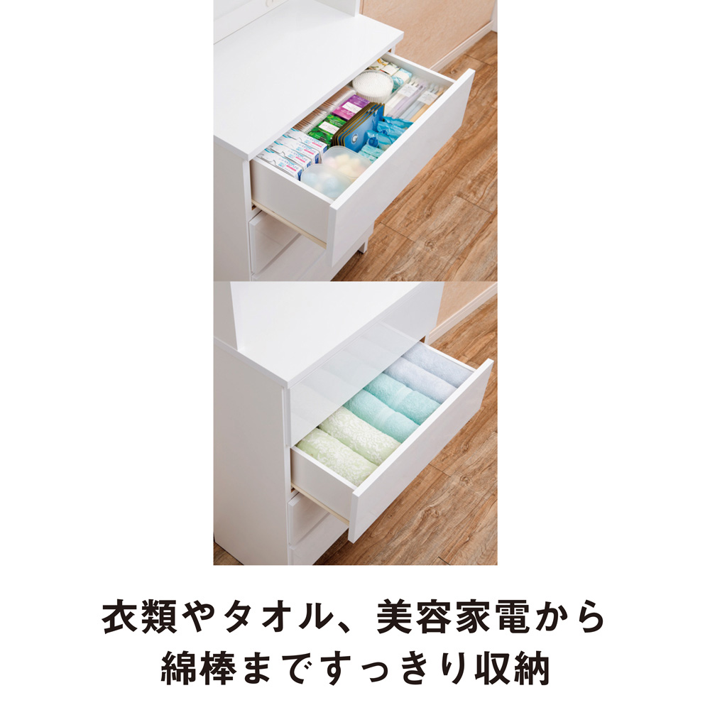 【引き出し】衣類やタオル、美容家電から細々した綿棒などまですっきり収納できます。 ※写真は幅60cmタイプです。