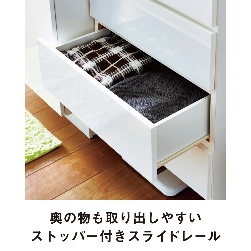 【引き出し】衣類やタオル、美容家電から細々した綿棒などまですっきり収納できます。 ※写真は幅60cmタイプです。