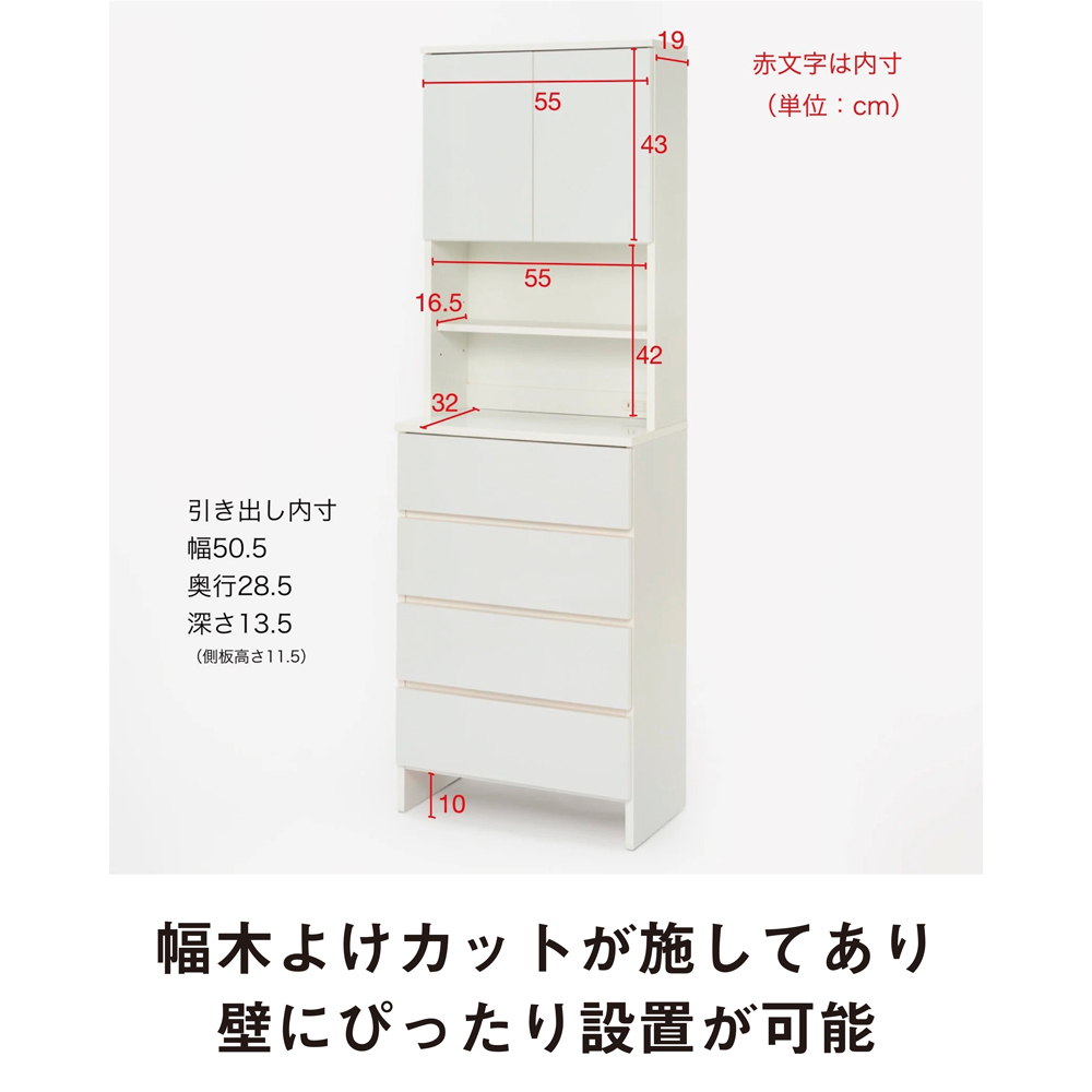 (ア)ホワイト 洗面所の収納にぴったりの清潔感のあるサニタリーチェスト。棚と引き出し、コンセント付きで快適なパウダールームに。