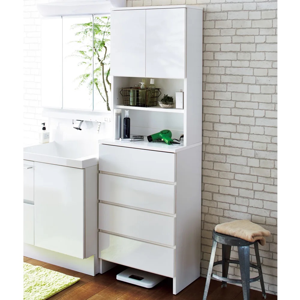 (ア)ホワイト 多彩な収納力で清潔感のあるサニタリースペースに。定番人気のシンプルデザインな洗面所収納チェストです。