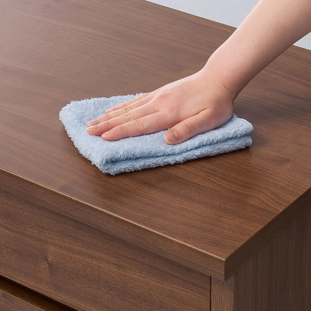 (ア)ナチュラルと(イ)ダークブラウン(エ)ホワイトの表面材はすり傷や汚れに強い「クリーンイーゴス(R)※」を採用。※「クリーンイーゴス(R)」は汚れや擦り傷、日光による劣化・変色に強いEBコート紙。油性マジックの汚れも乾拭きで拭き取れます。