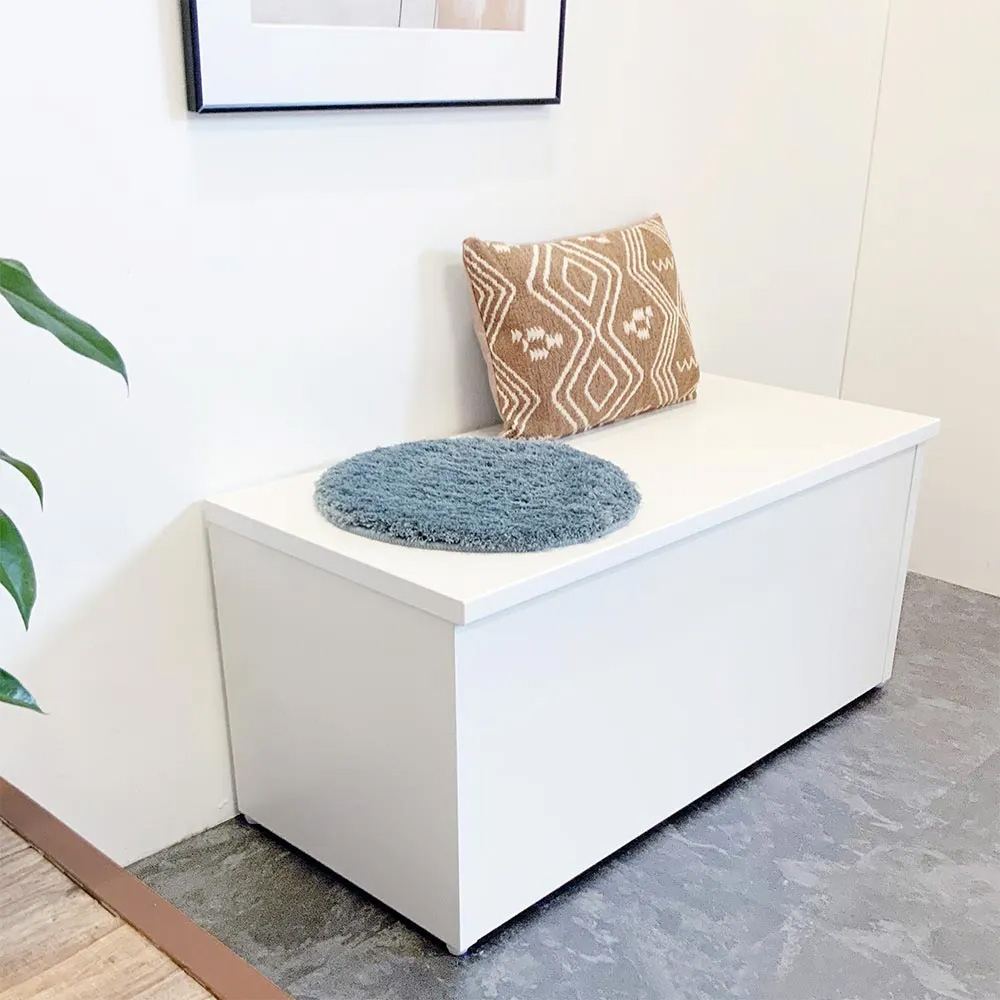 (エ)ホワイト 座部高さ41cm。玄関に置いて靴を履く玄関ベンチとして。来客時にも重宝します。