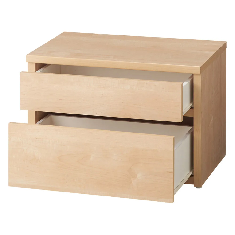 (ア)ナチュラル 引き出しは全段スライドレール付き。最大まで引出しても引き出しが抜け落ちません。